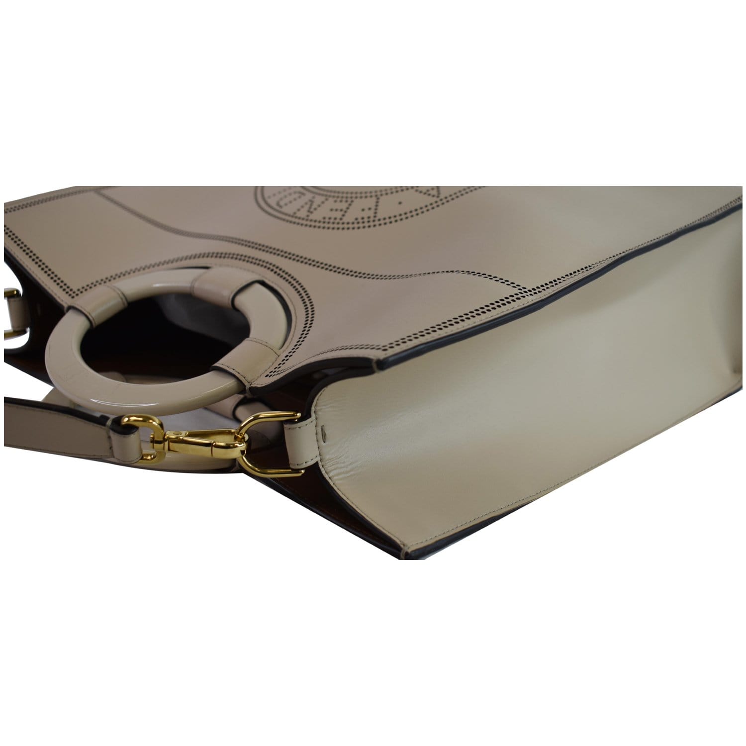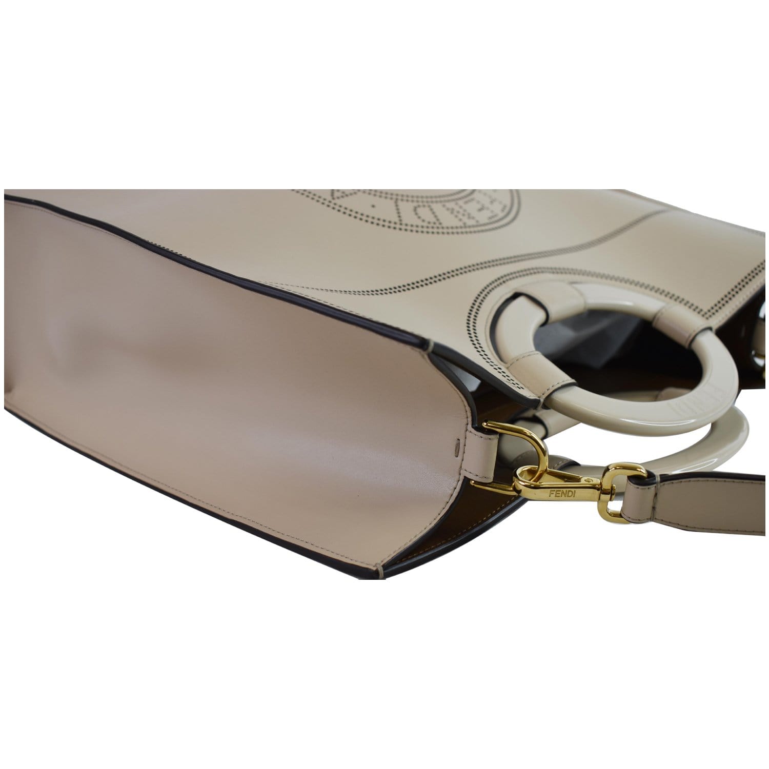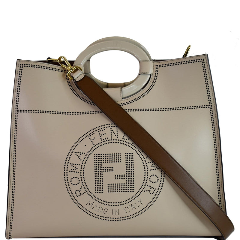 FENDI Runaway Large Perforated Leather Shopper Tote Bag Beige