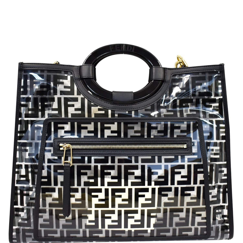 FENDI Runaway Shopper Medium TPU FF Leather Tote Bag Black