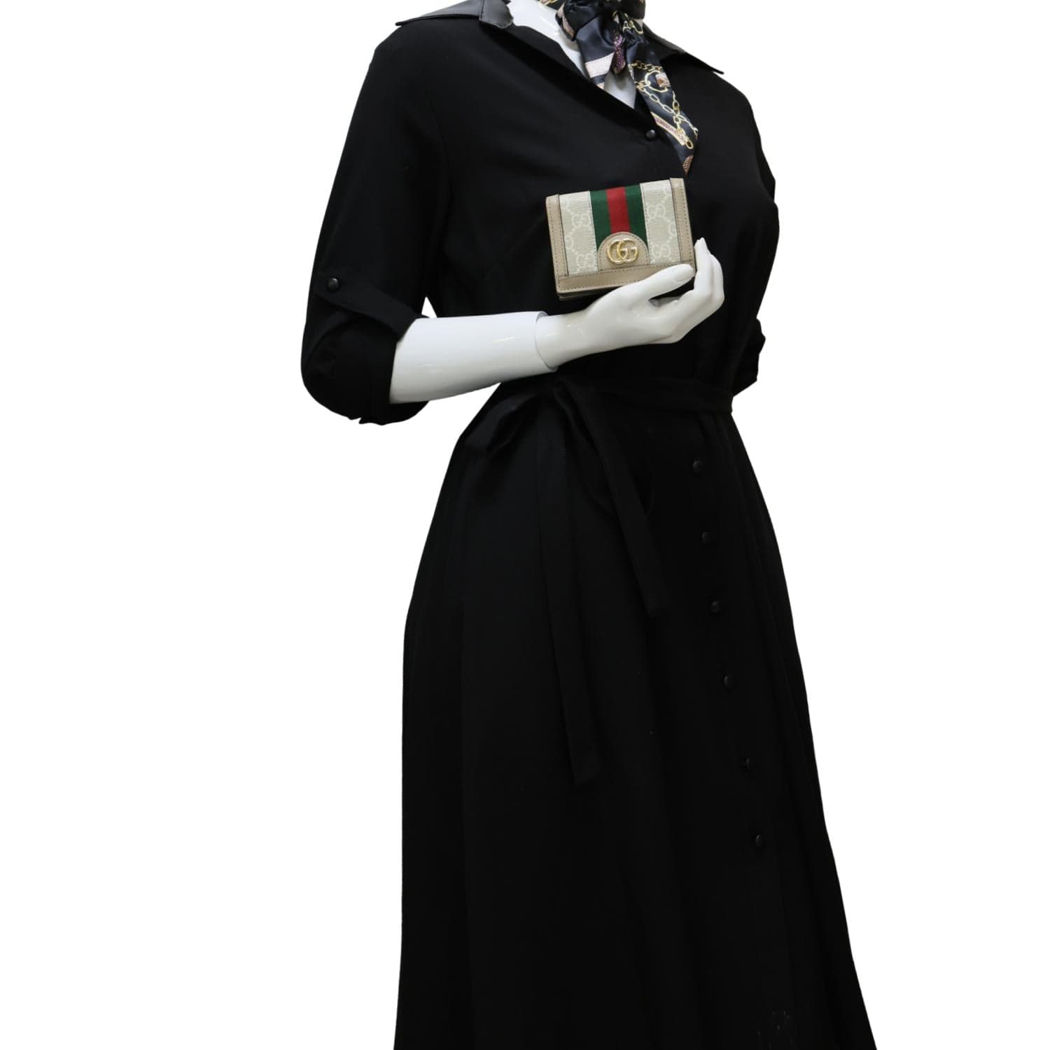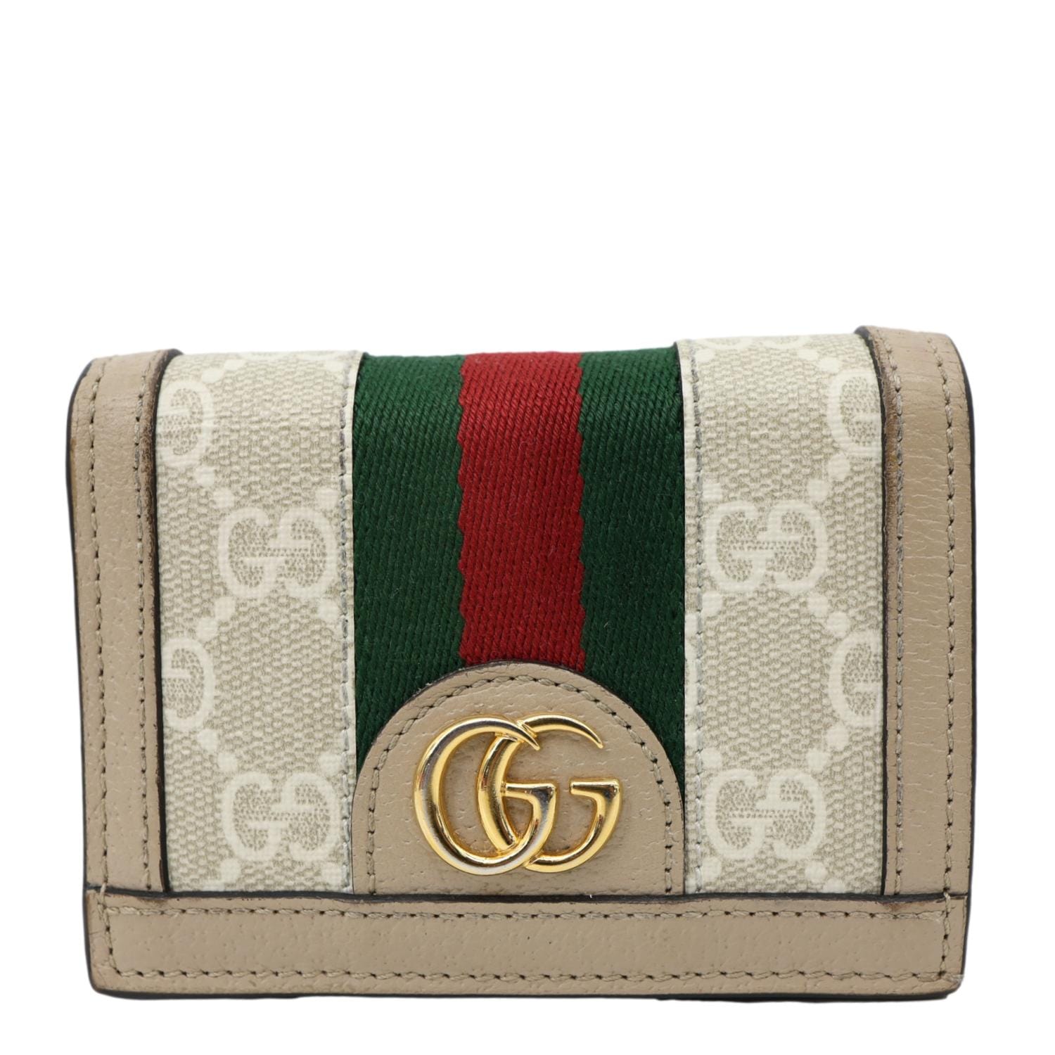 GUCCI Ophidia Web GG Supreme Canvas Card Case Wallet Beige 523155