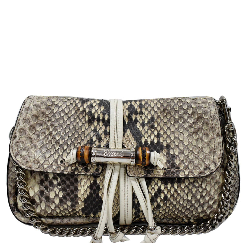 Croisette Bamboo Evening Python Leather Shoulder Bag Off White 235320