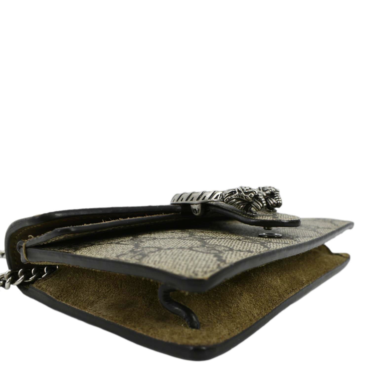 Experience luxury with the GUCCI Dionysus Bag, adorned in sophisticated GG Supreme Canvas in elegant taupe. Compact yet stylish, this iconic piece seamlessly blends fashion with functionality.
