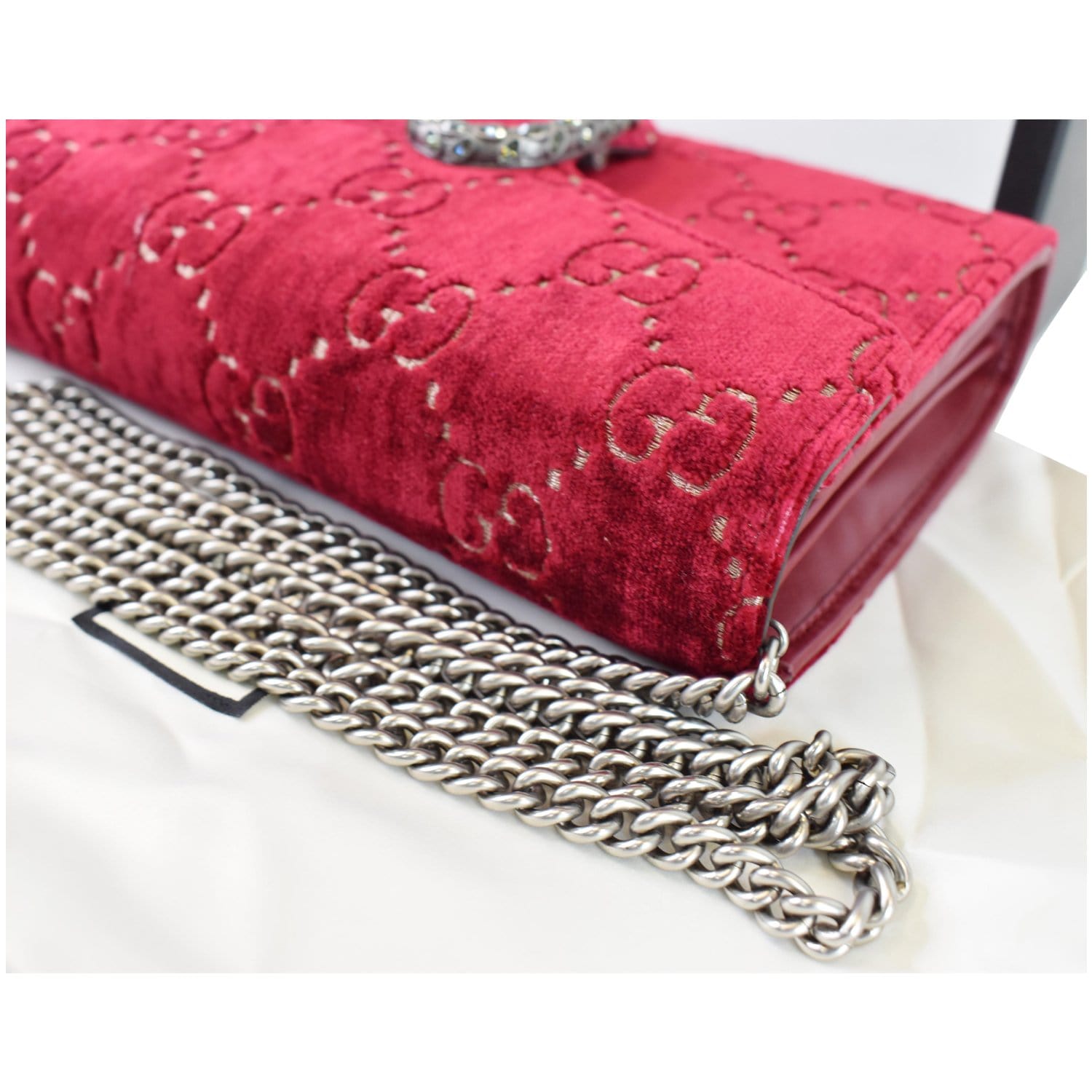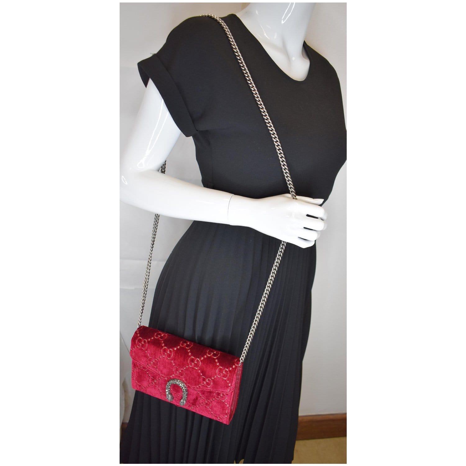 Gucci Dionysus Mini Velvet GG Monogram Crossbody Chain Wallet