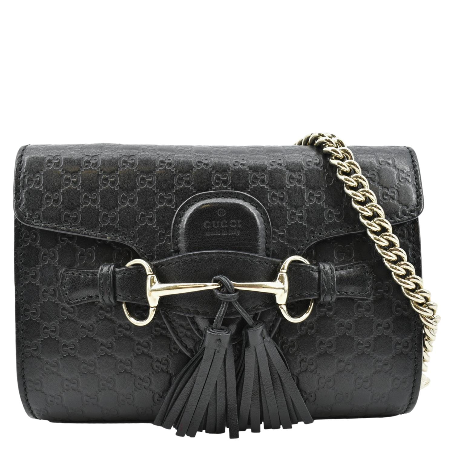 GUCCI Emily Mini Micro GG Leather Shoulder Bag Black 449636