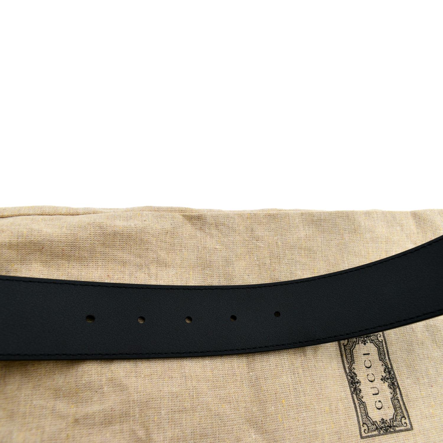 Double G Buckle Black Leather Belt Size 44 Black 400593