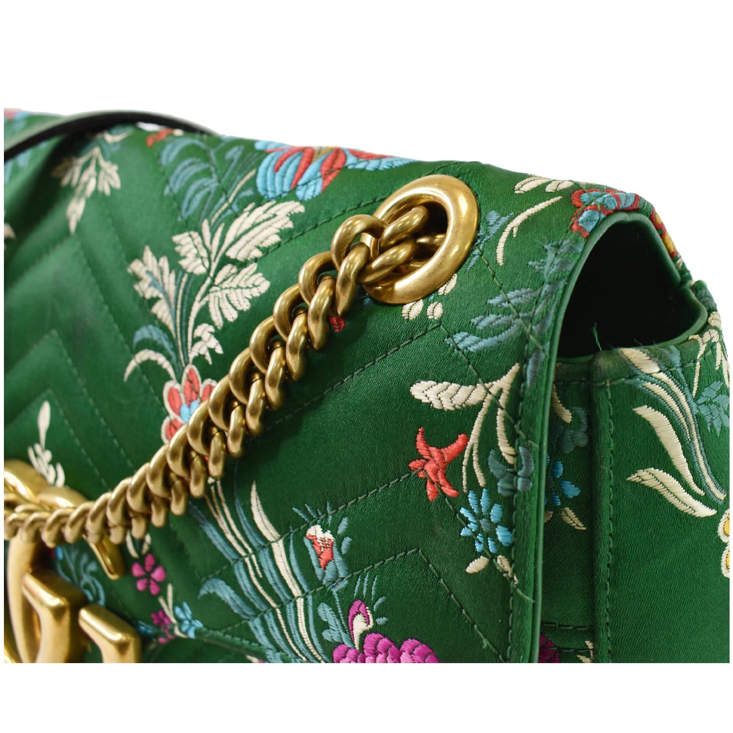 GUCCI GG Marmont Floral Medium Jacquard Matelasse Shoulder Bag Green 443496
