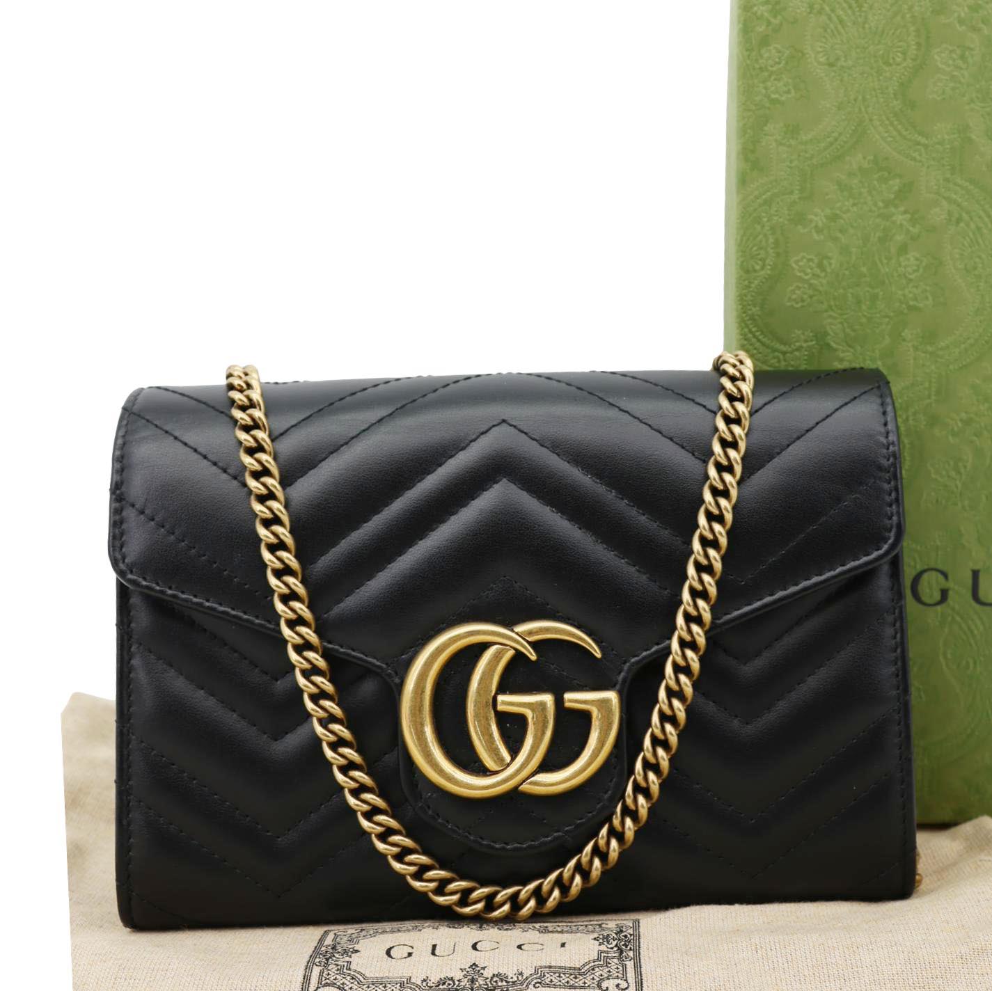 GUCCI GG Marmont Mini Matelasse Leather Crossbody Bag Black 474575