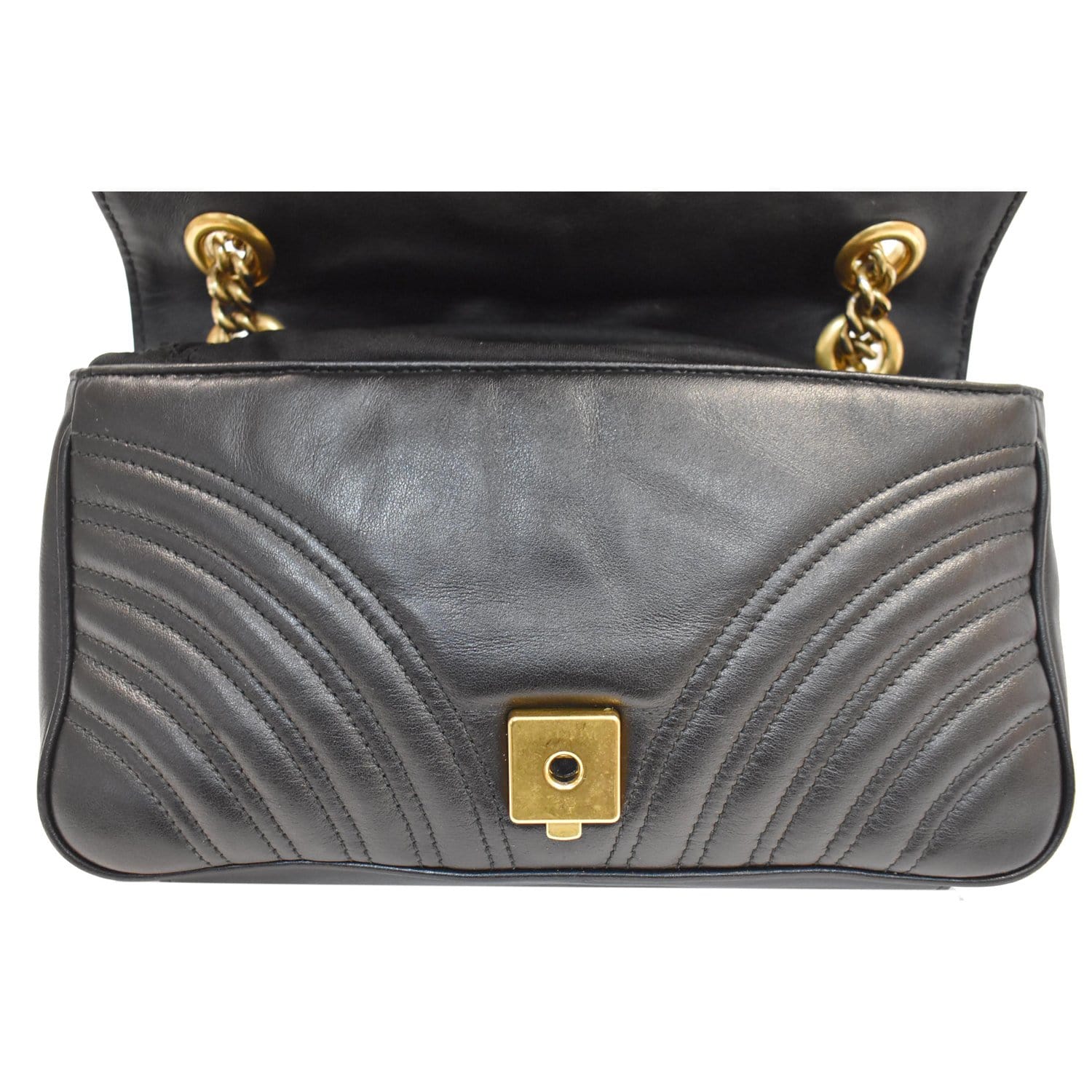 GUCCI GG Marmont Small Matelasse Leather Crossbody Bag Black 443497