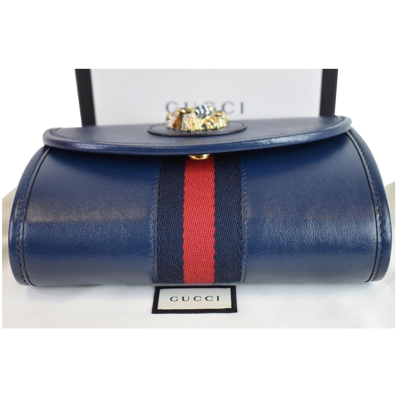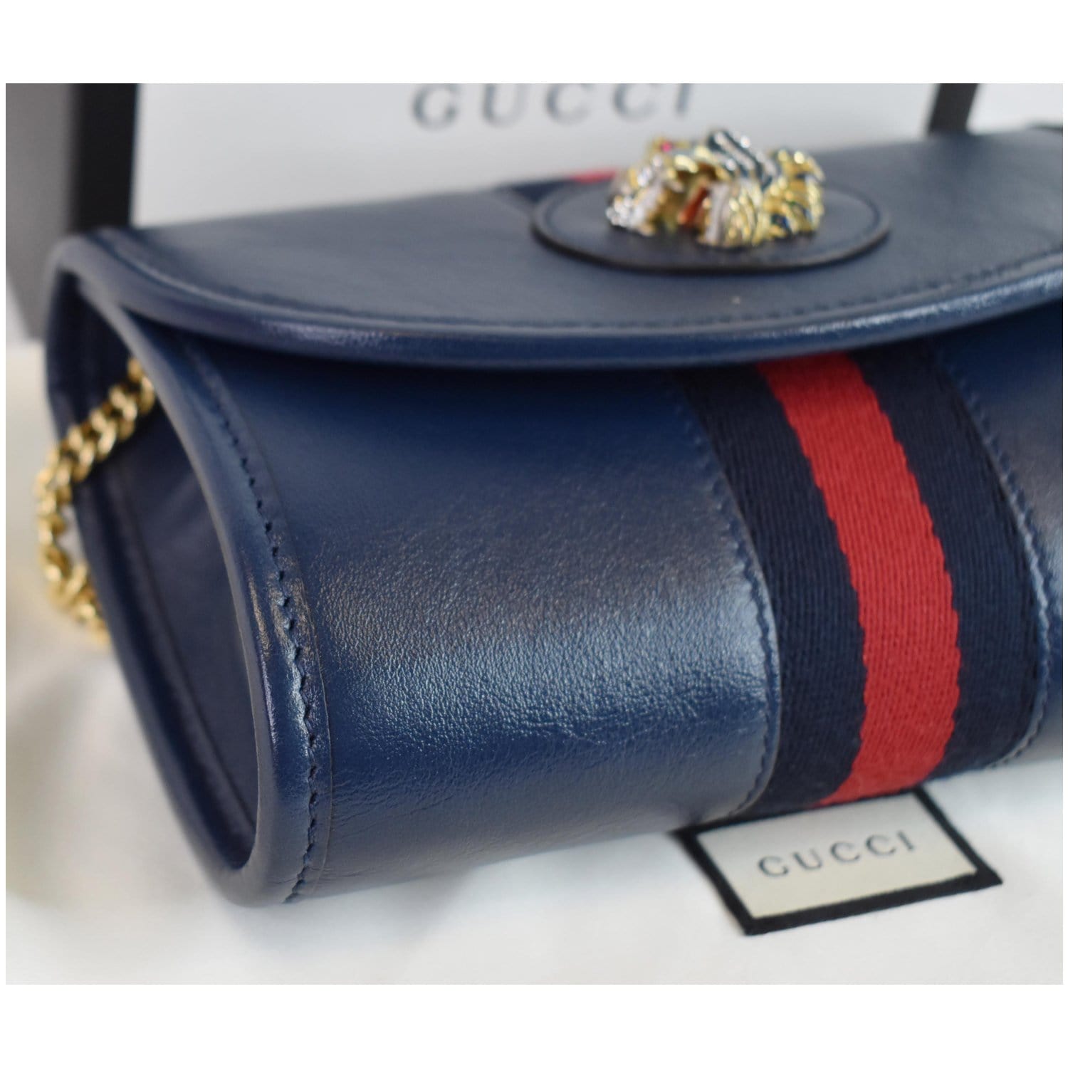 GUCCI Rajah Mini Leather Chain Shoulder Bag Blue 573797