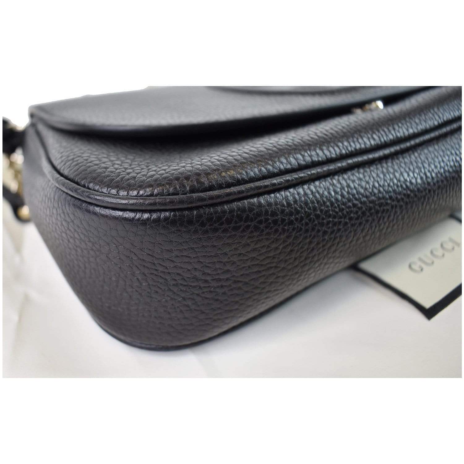 Gucci Soho Chain Flap Leather Shoulder Bag Black - Shop Now