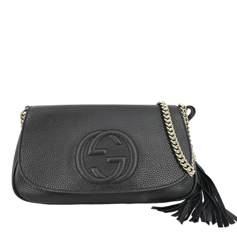 Soho GG Flap Leather Chain Shoulder Bag Black 336752
