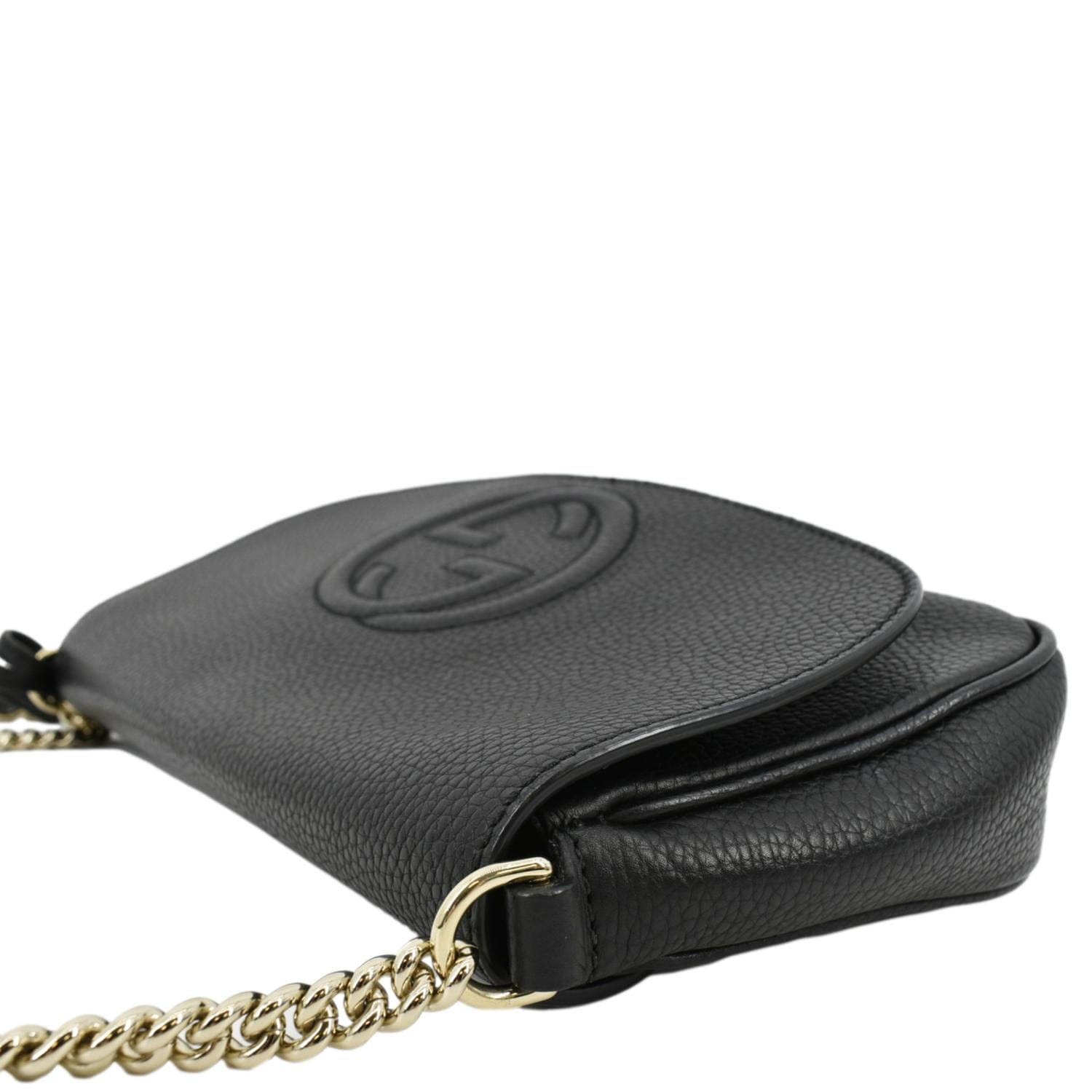 GUCCI Soho GG Flap Leather Chain Shoulder Bag Black 336752