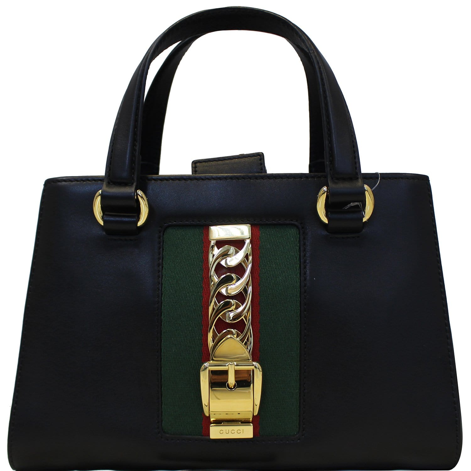 GUCCI Sylvie Small Leather Black Classic Top Handle Satchel Bag 460381