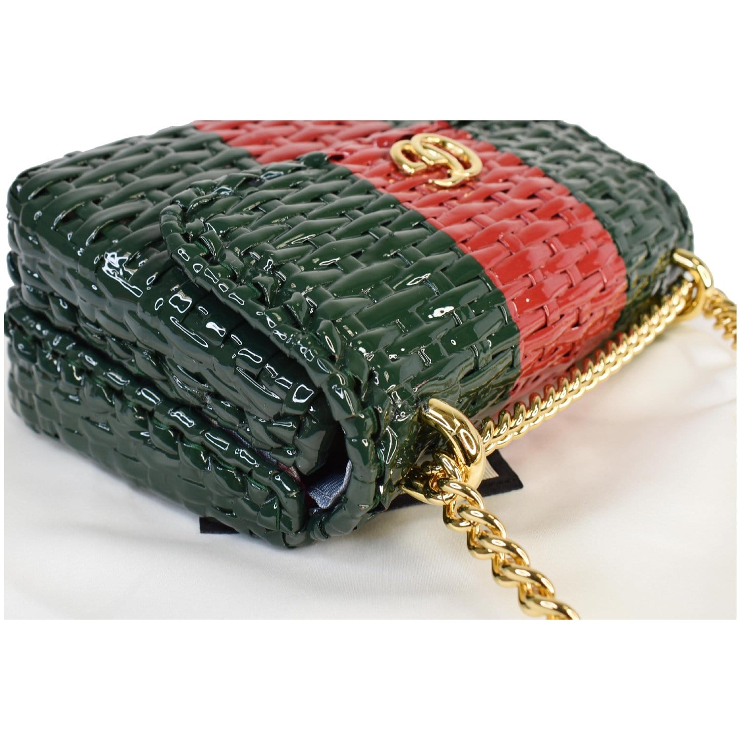 Gucci Wicker Linea Cestino Mini Web Shoulder Bag Green