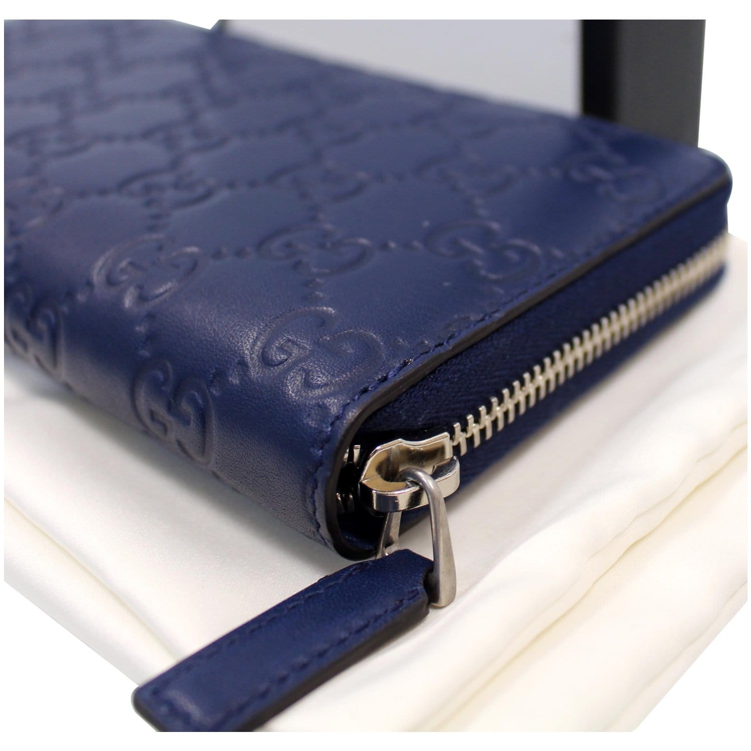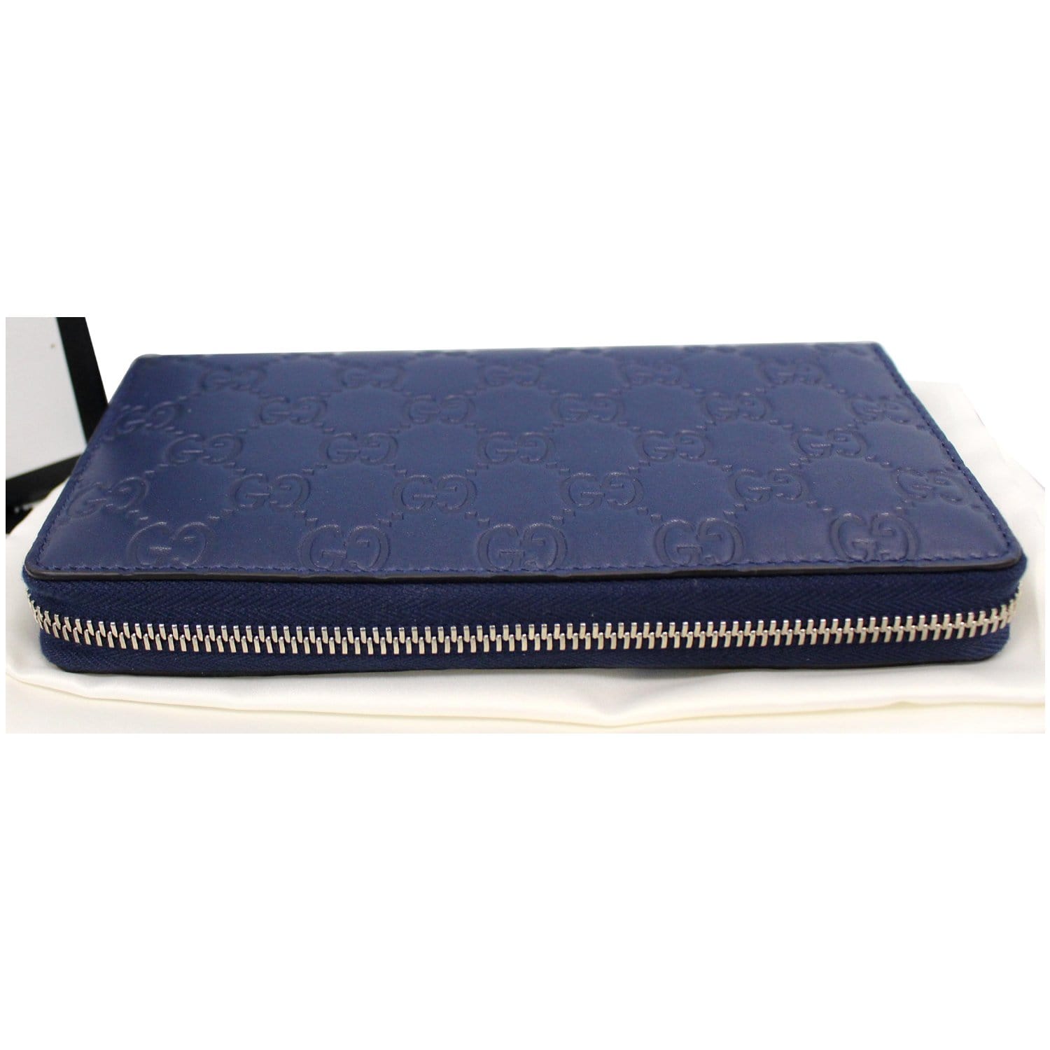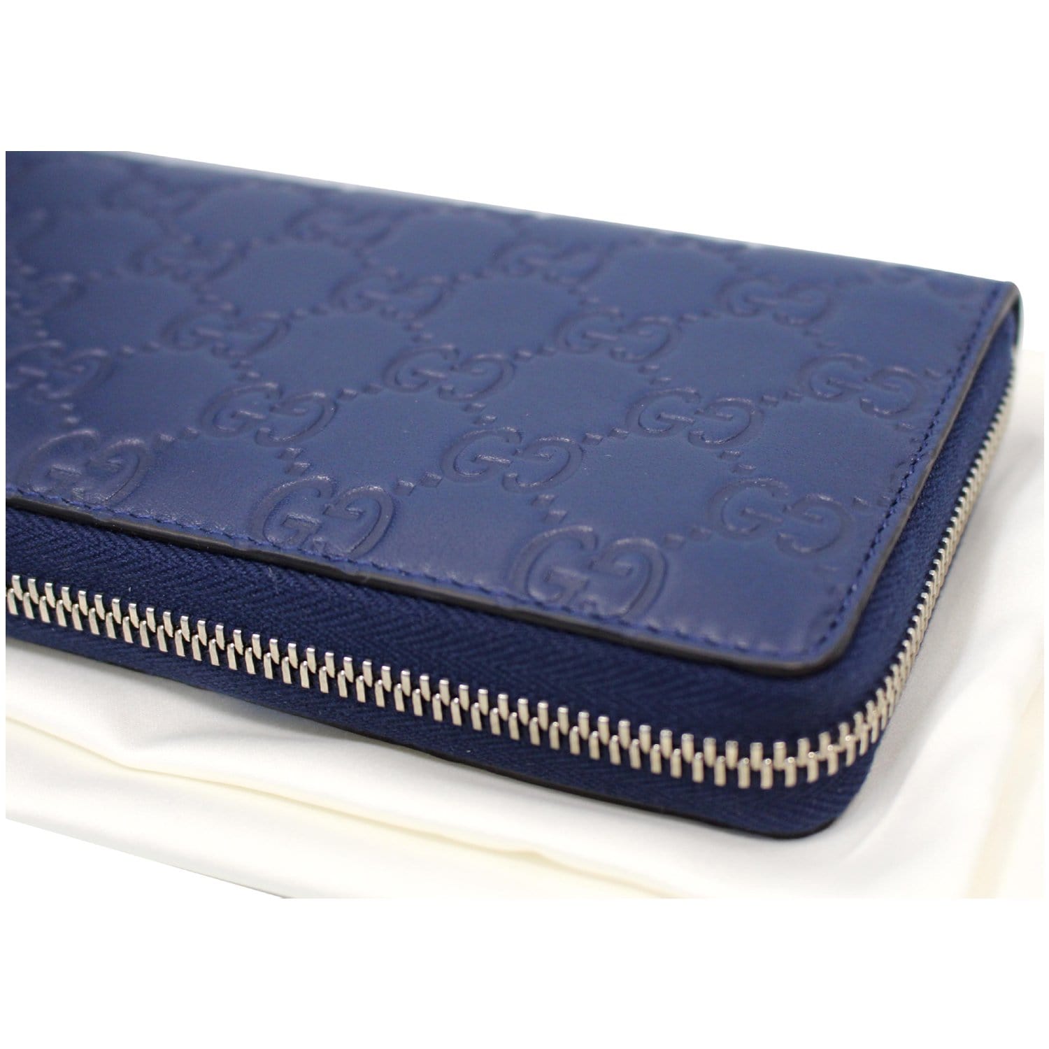 GUCCI Zip Around NY New York Yankees Patch Guccissima Wallet Blue - Last Call