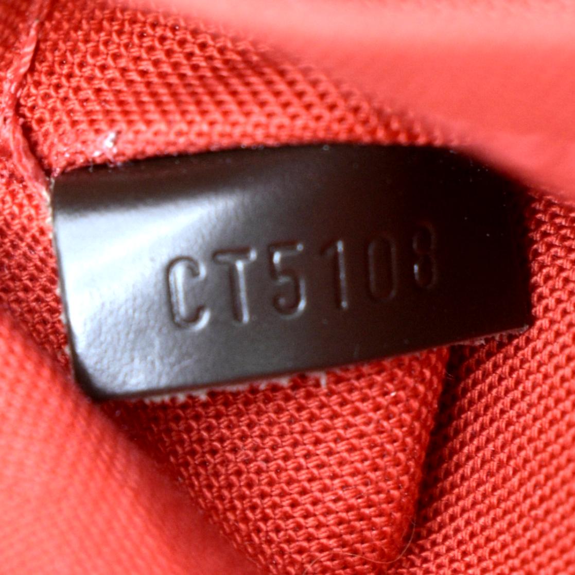 - Material: Damier Ebene and leather