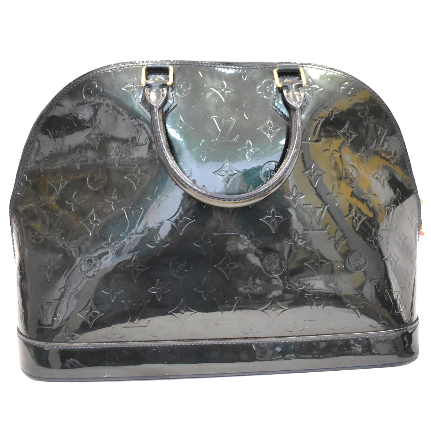 Alma Large GM Vernis Monogram Leather Satchel Bag Dark Green