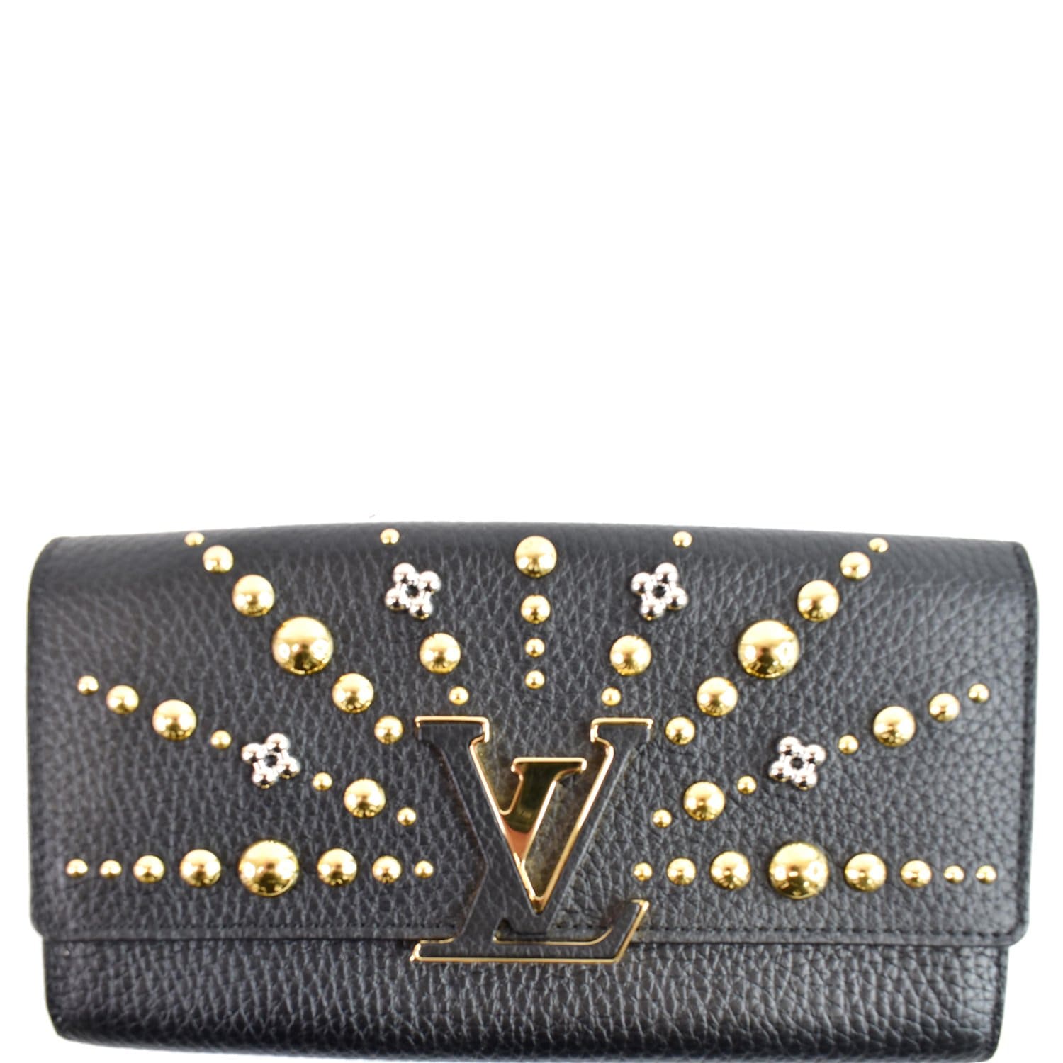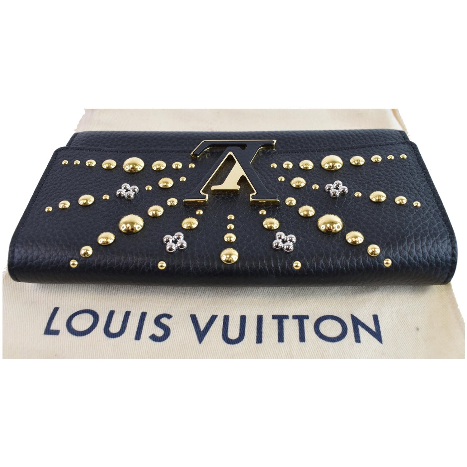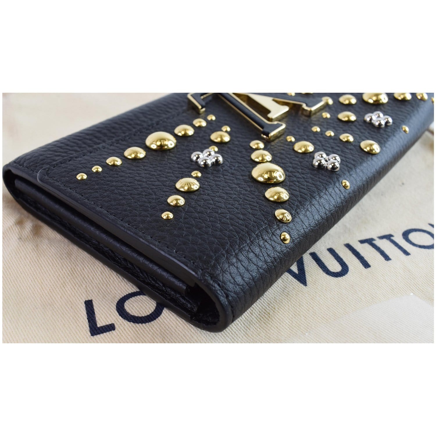 LOUIS VUITTON Capucines Studded Taurillon Leather Wallet Black