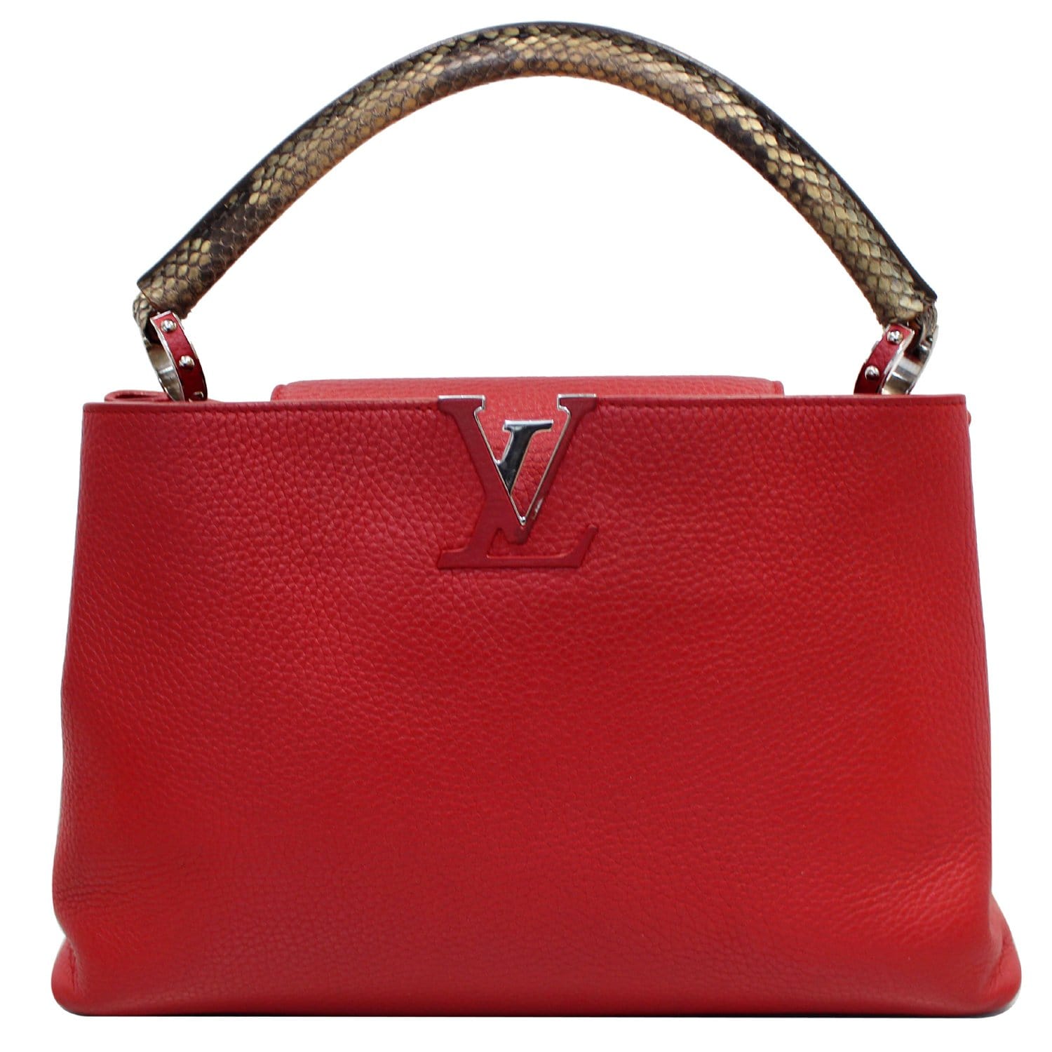 Capucines Taurillon Leather/Python Shoulder Bag Scarlet