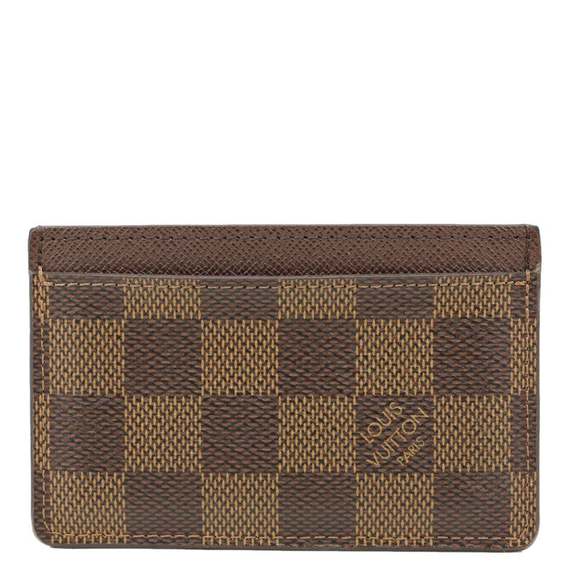LOUIS VUITTON card holder crafted in signature Damier Ebene canvas with a sleek finish. Compact and functional design, perfect for organizing essential cards in timeless style.