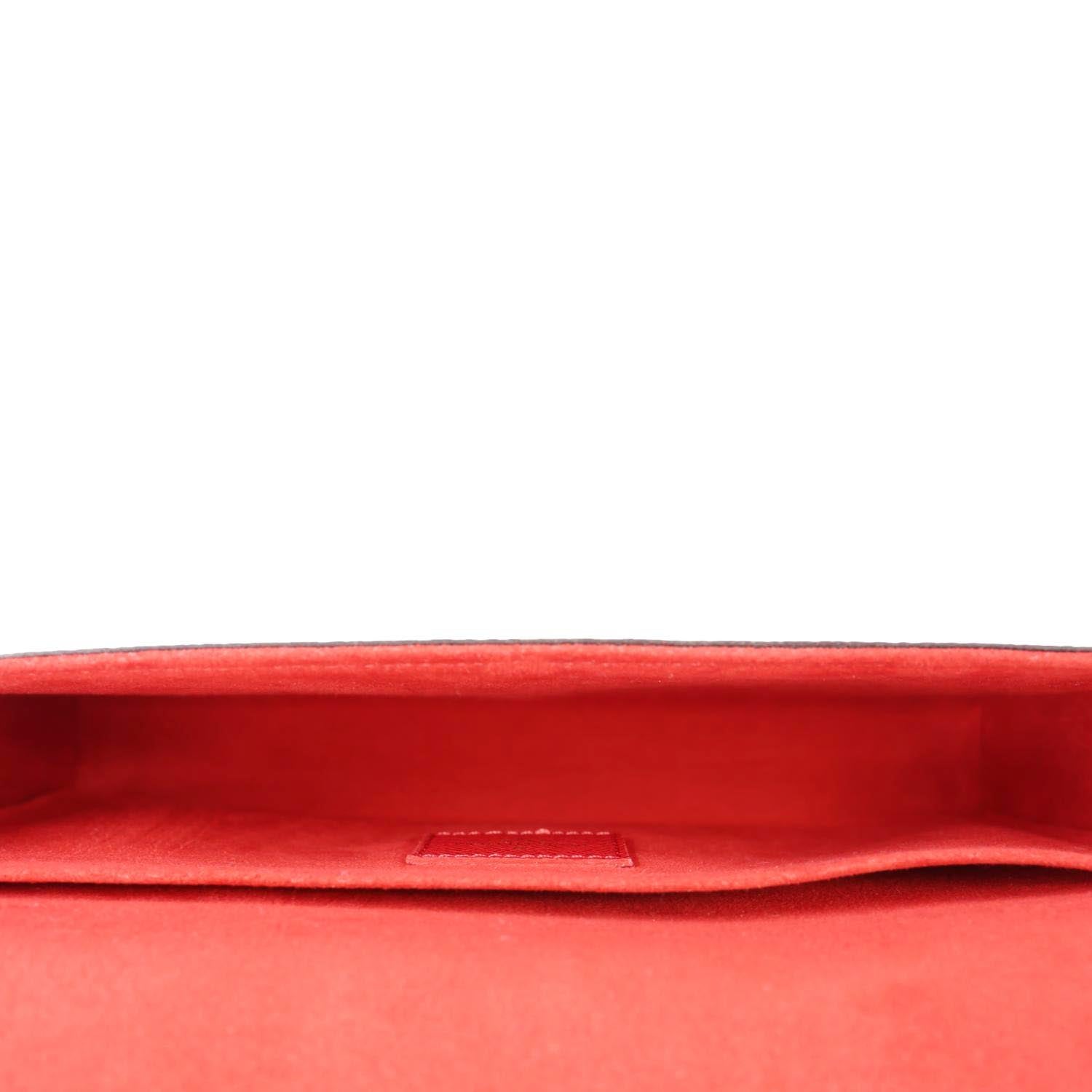 LOUIS VUITTON Félicie Pochette in Damier Ebene canvas with a sleek envelope design and gold-tone chain. A versatile crossbody that doubles as a clutch, perfect for both day and evening use.