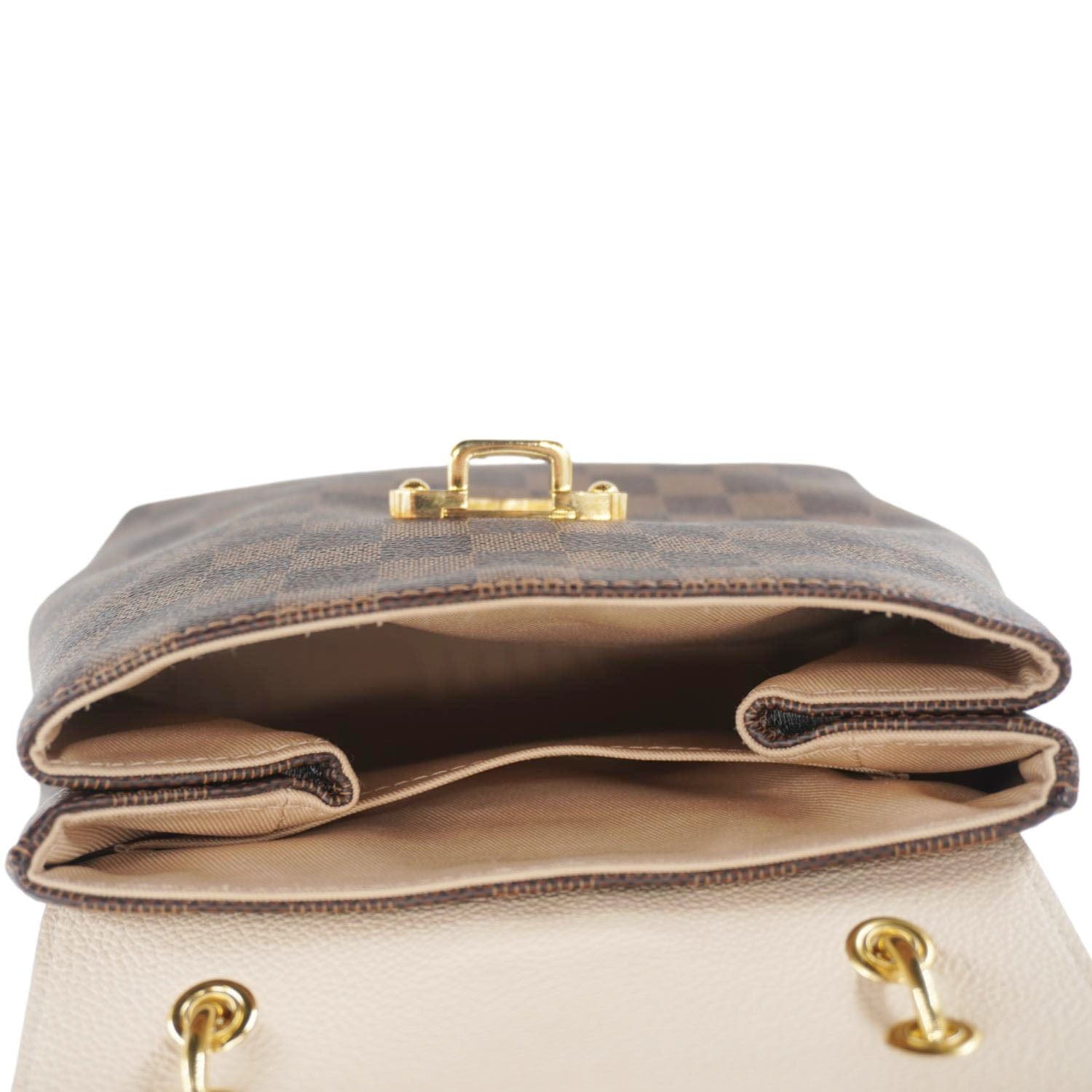 The Louis Vuitton Clapton Backpack in Damier Ebene canvas combines functionality with refined style. Featuring a structured design with a cream beige leather flap, gold-tone hardware, and adjustable straps, it's a versatile and elegant choice for on-the-go sophistication.