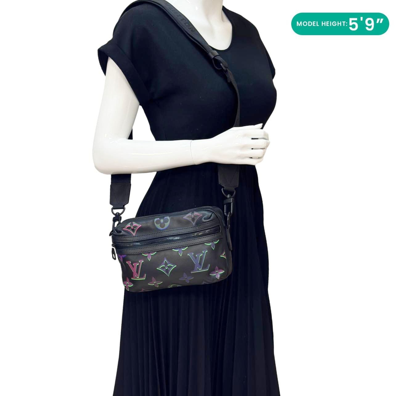 The Louis Vuitton Comet PM Spotlight features a bold Monogram Giant design on calfskin leather with a dynamic, spotlight-inspired look. This sleek messenger bag offers a double zip closure and a front pocket for secure carrying.