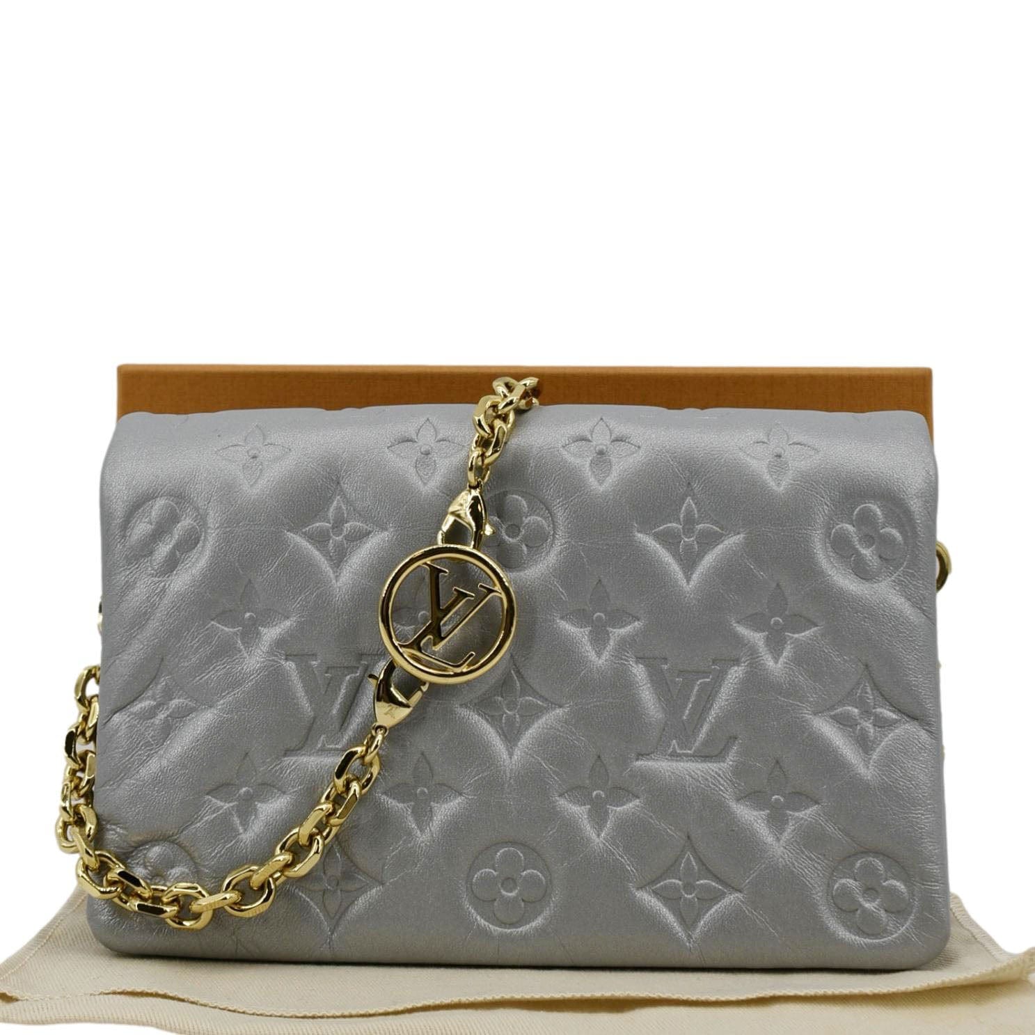LOUIS VUITTON Coussin Monogram Embossed Leather Pochette Crossbody Bag Grey