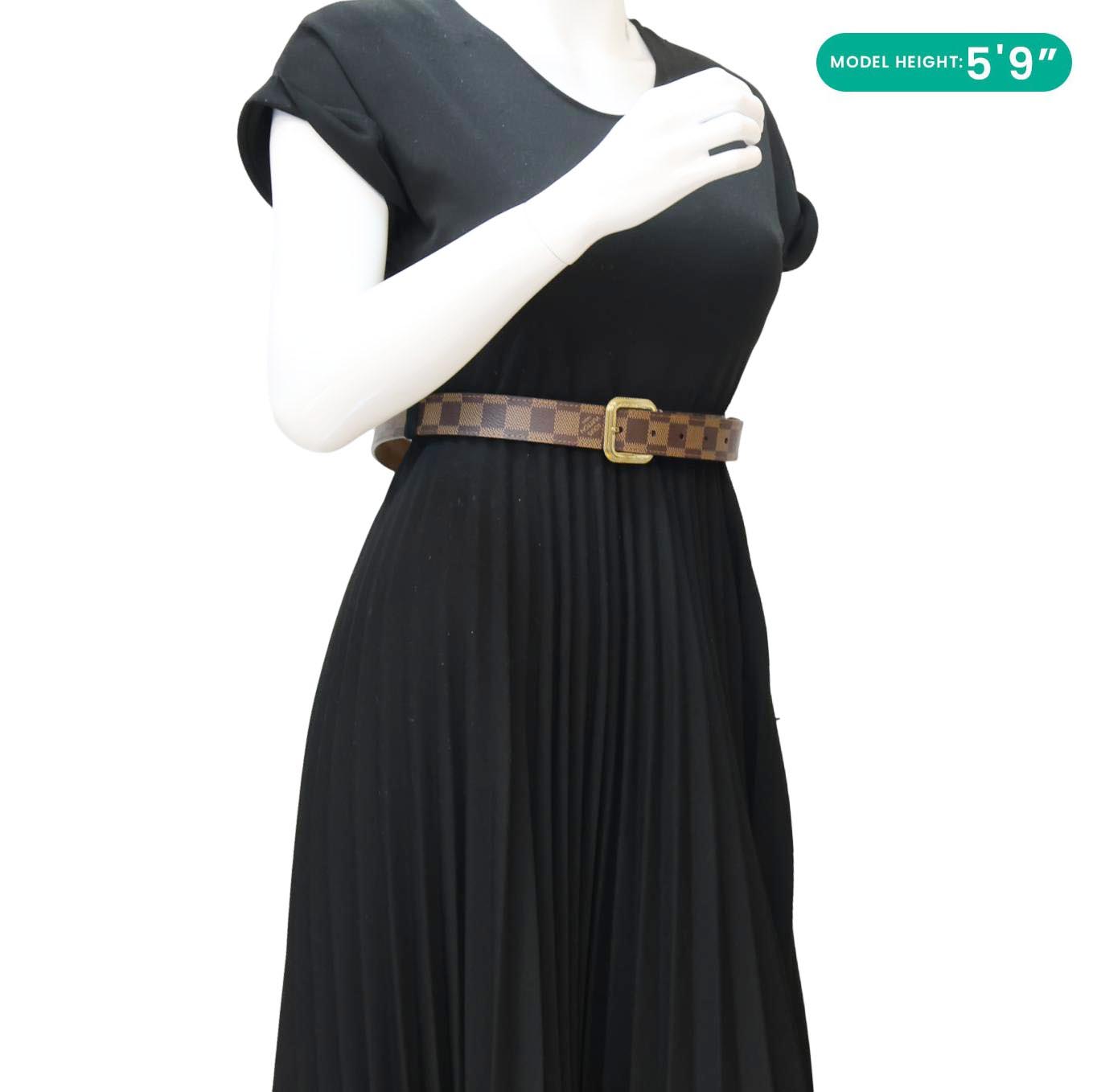 The Louis Vuitton Damier Ebene Tresor Belt in brown features the signature checked canvas with a sleek buckle. A timeless accessory that pairs classic elegance with modern versatility.