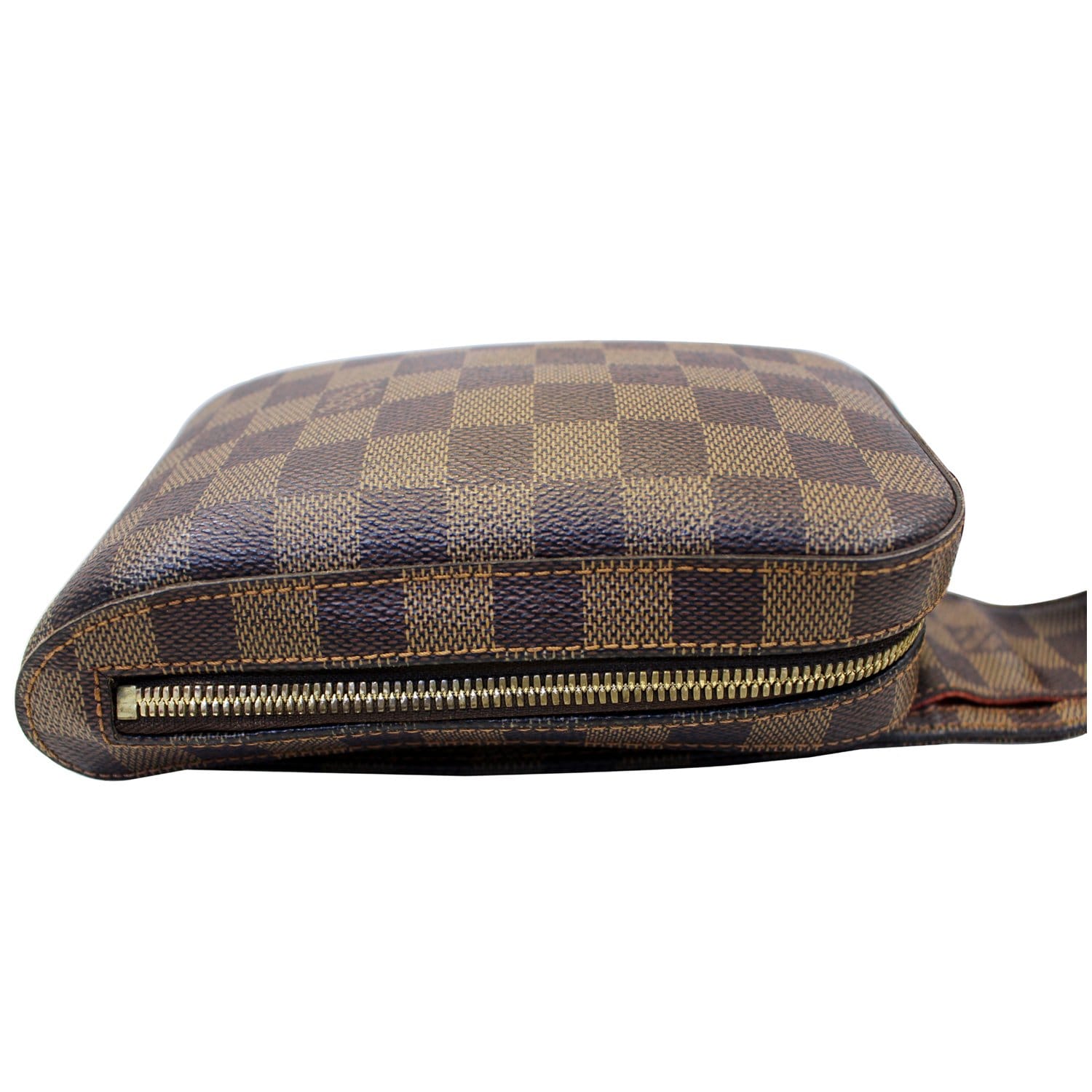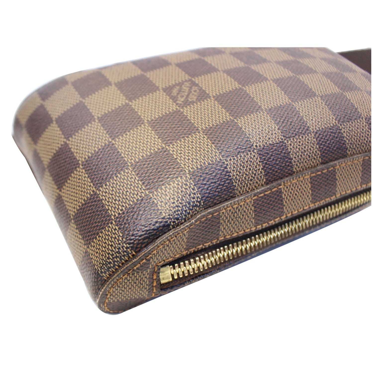 Louis Vuitton Damier Ebene Geronimos Hip Bag is perfect for travel or running errands. This versatile bag features an adjustable canvas strap that fits snugly on the chest, back or waist for ultimate hands-free convenience.