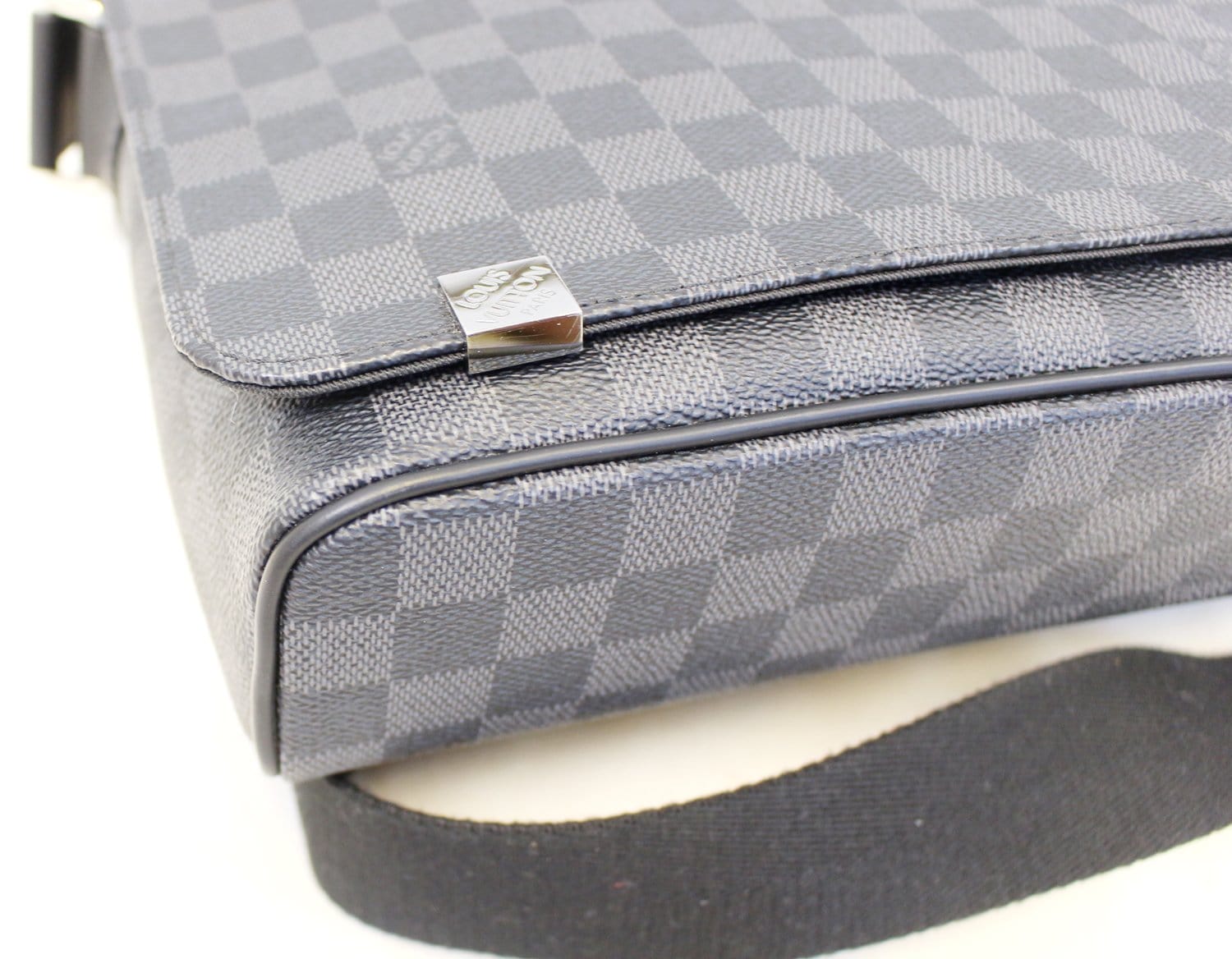 Louis Vuitton Damier Graphite District PM Bag is made for anyone with impeccable taste who has an affinity for utilitarian design. This bag has a compact shape with a surprisingly generous interior. It features a large adjustable, canvas strap for easy carrying, which can be worn on the shoulder or across the body.
