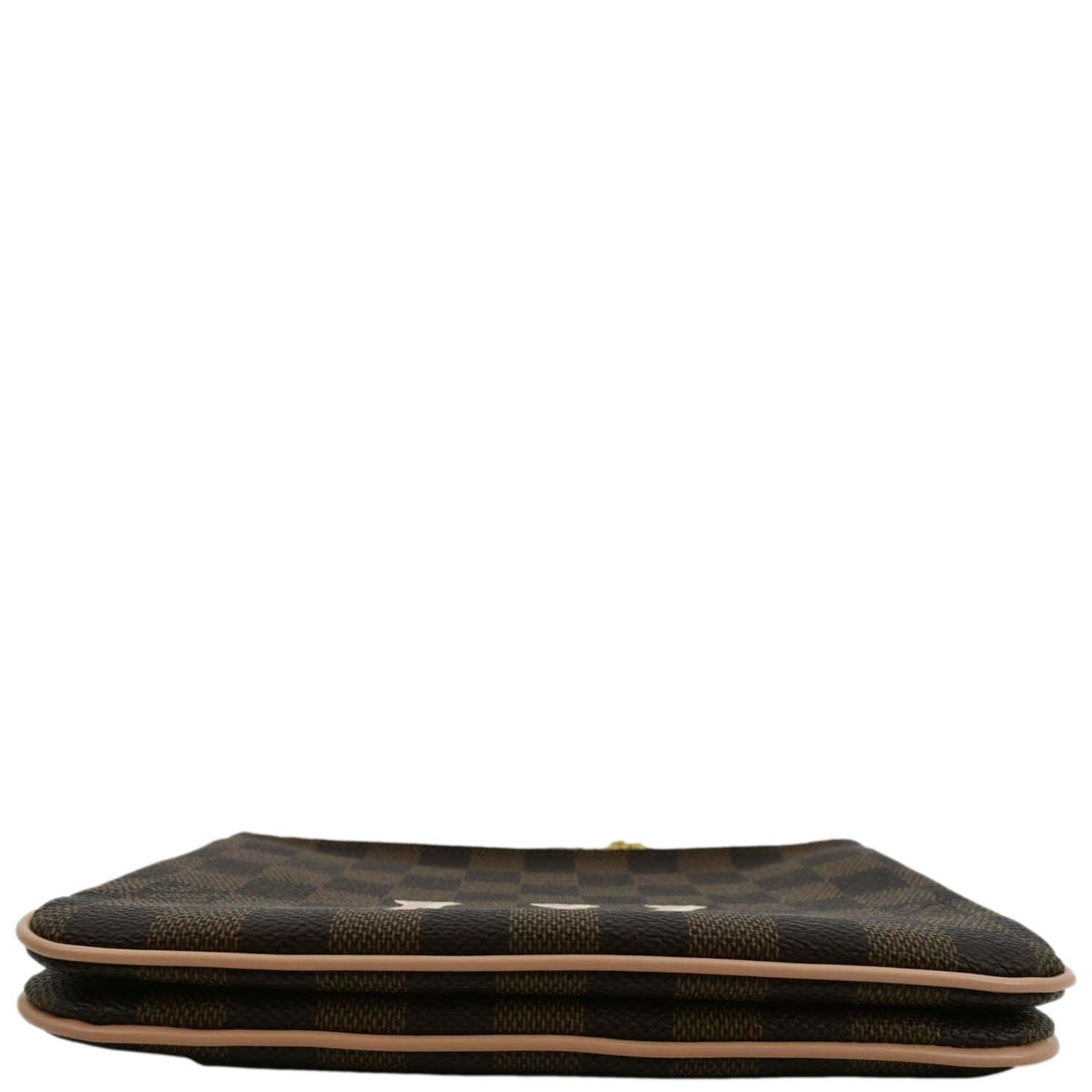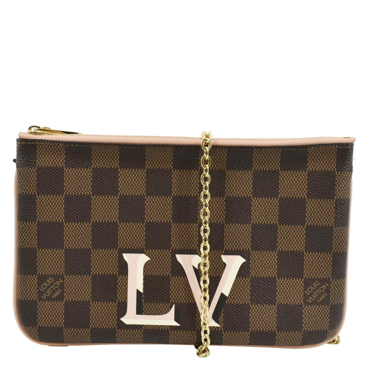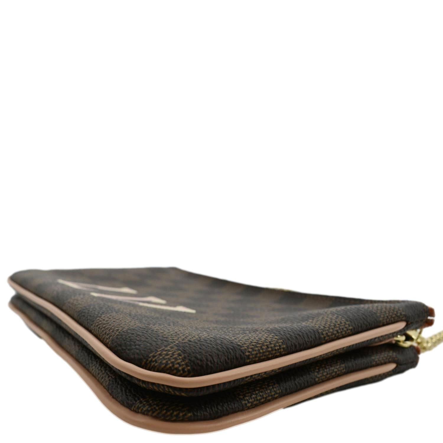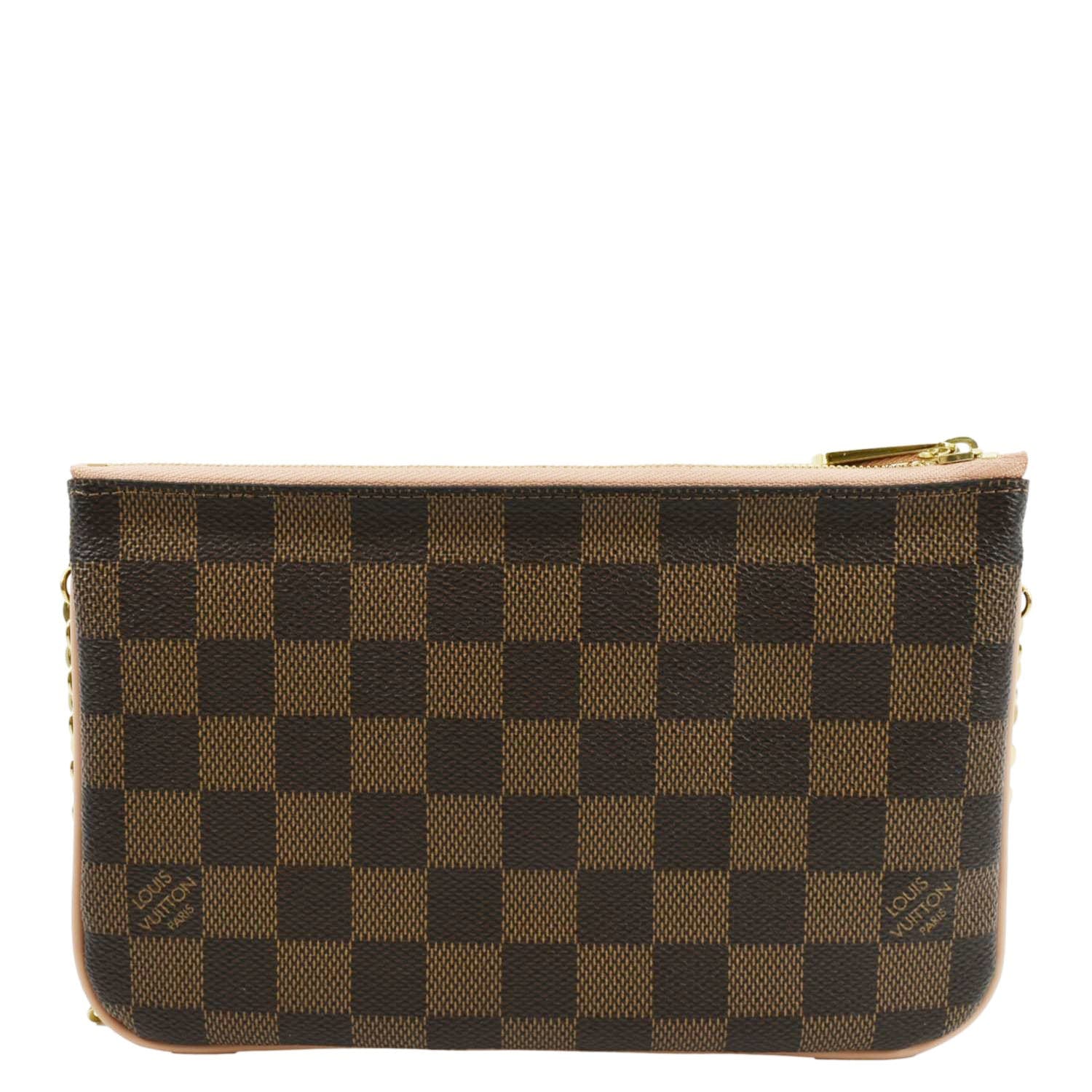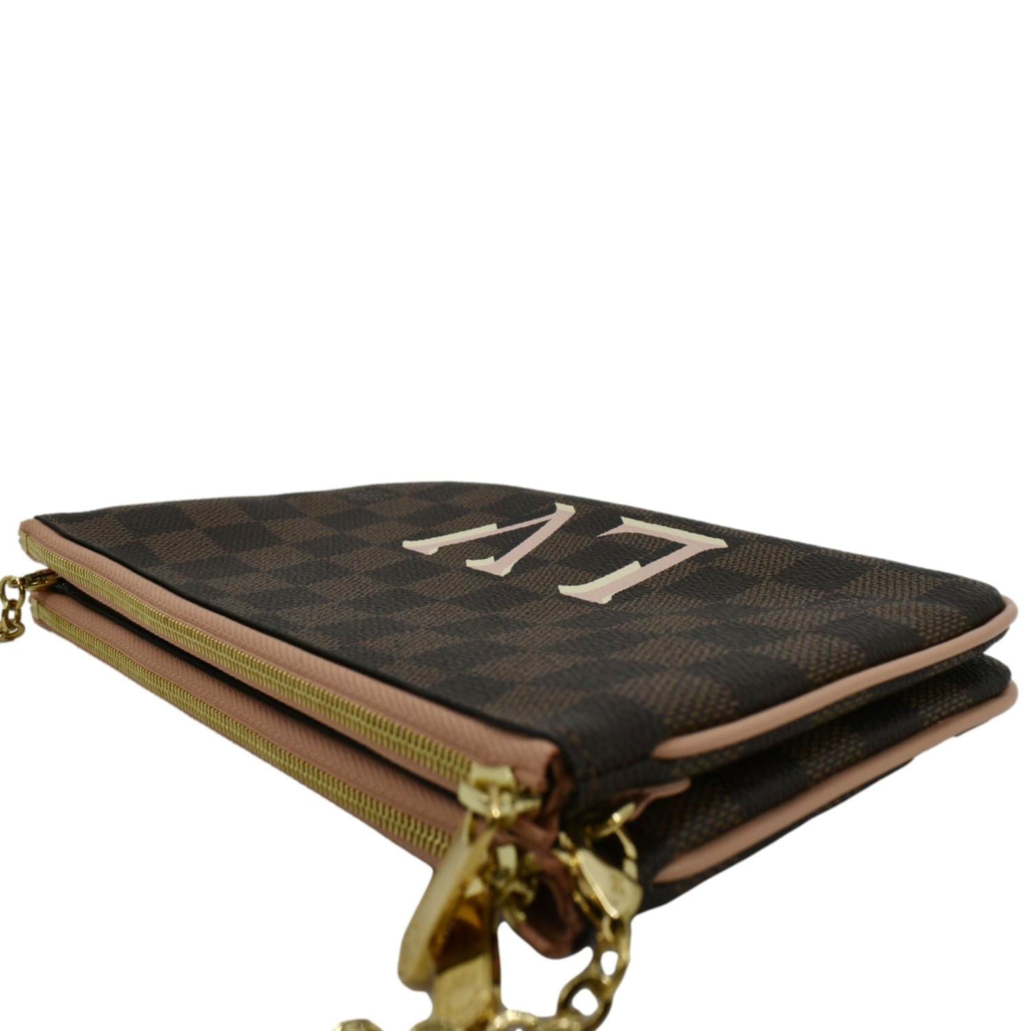 LOUIS VUITTON Double Zip Pochette Damier Ebene Crossbody Bag Rose Ballerine
