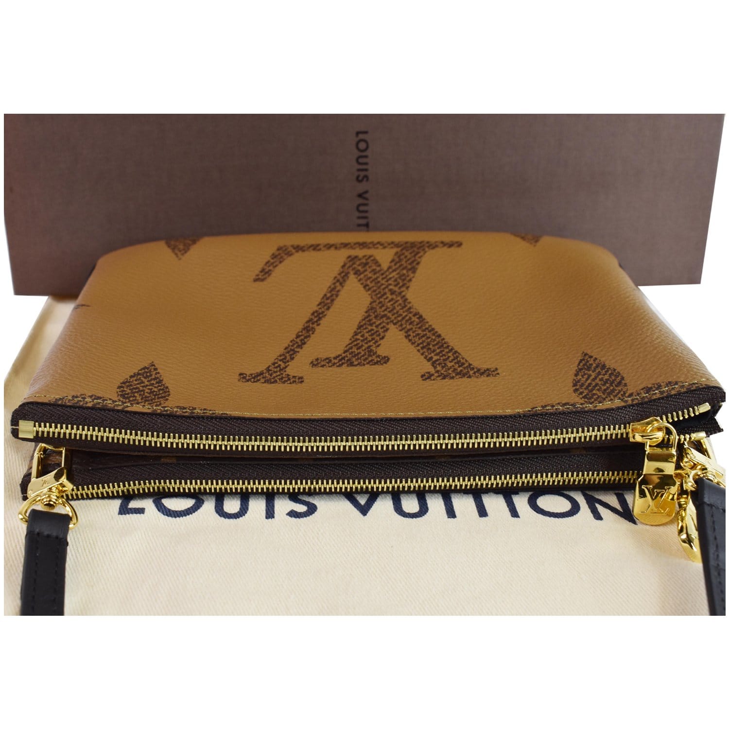 LOUIS VUITTON Double Zip Pochette Reverse Monogram Giant Shoulder Bag Brown