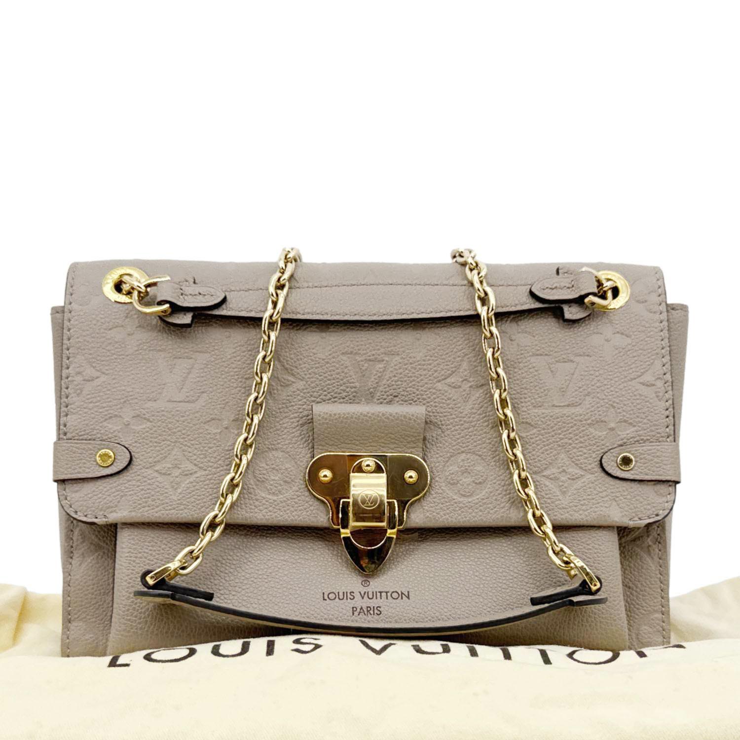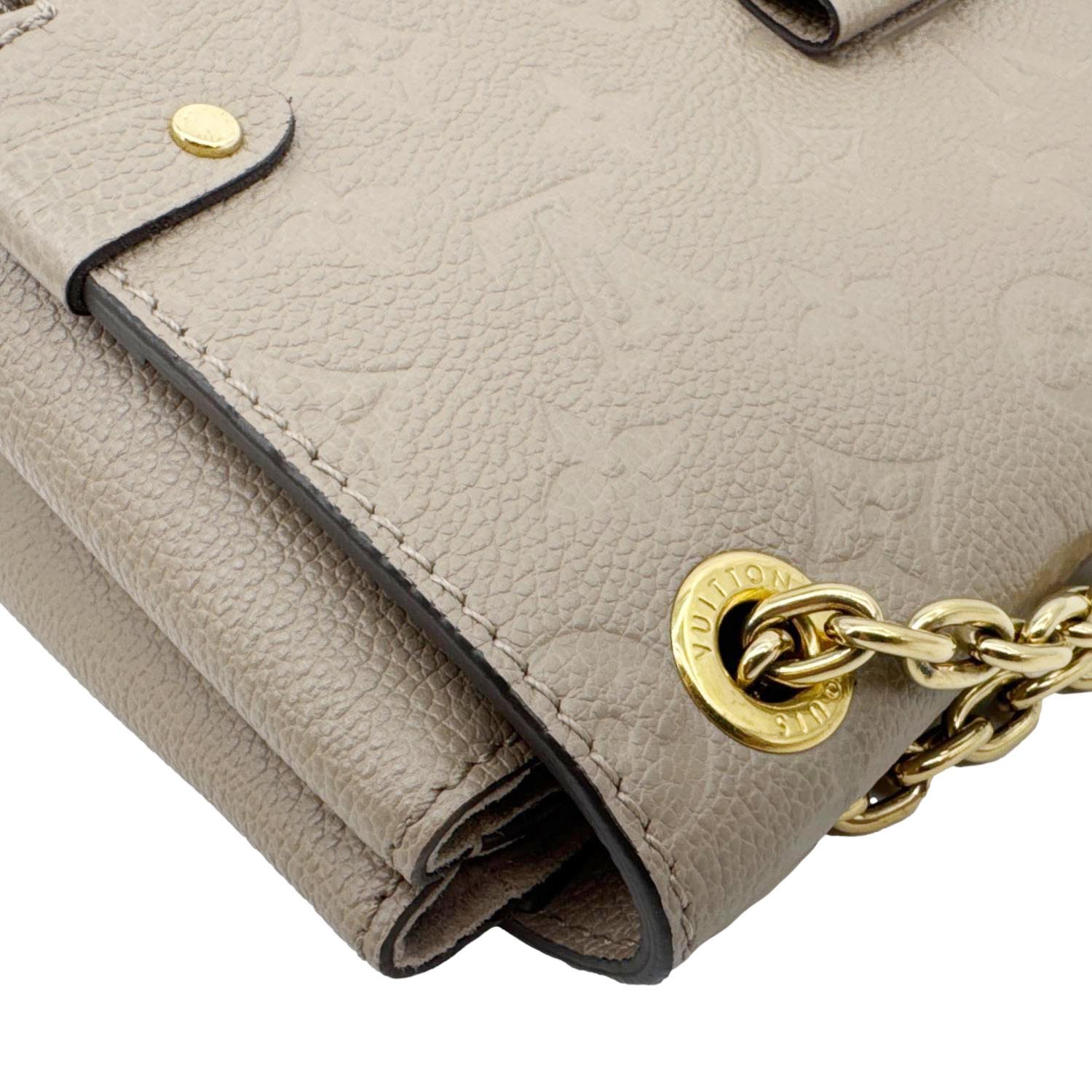The LOUIS VUITTON Vavin PM is a compact yet chic shoulder bag in beige Monogram Empreinte leather with a refined chain strap. Its sleek design and elegant finish make it ideal for day-to-night versatility.