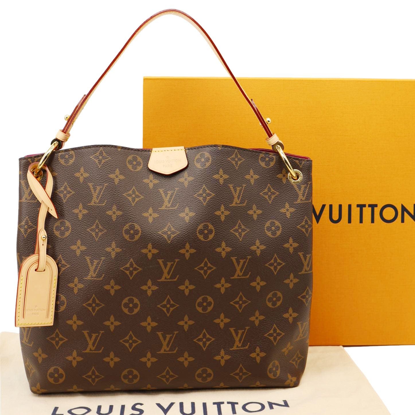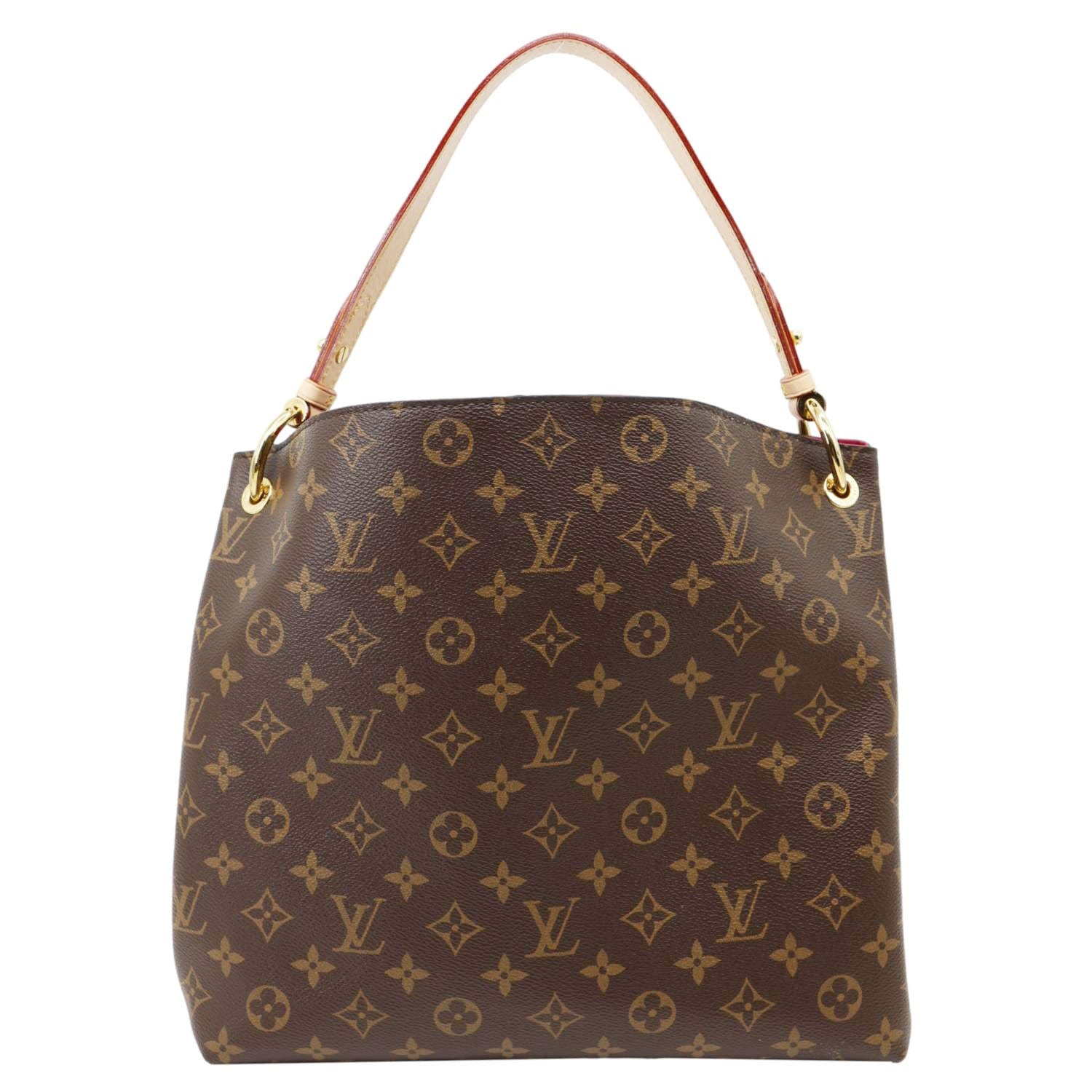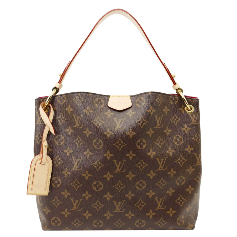 The Louis Vuitton Graceful PM Bag in Monogram canvas is a lightweight hobo-style shoulder bag with a relaxed silhouette. Accented with a flat leather strap and gold-tone hardware, it’s perfect for everyday elegance.