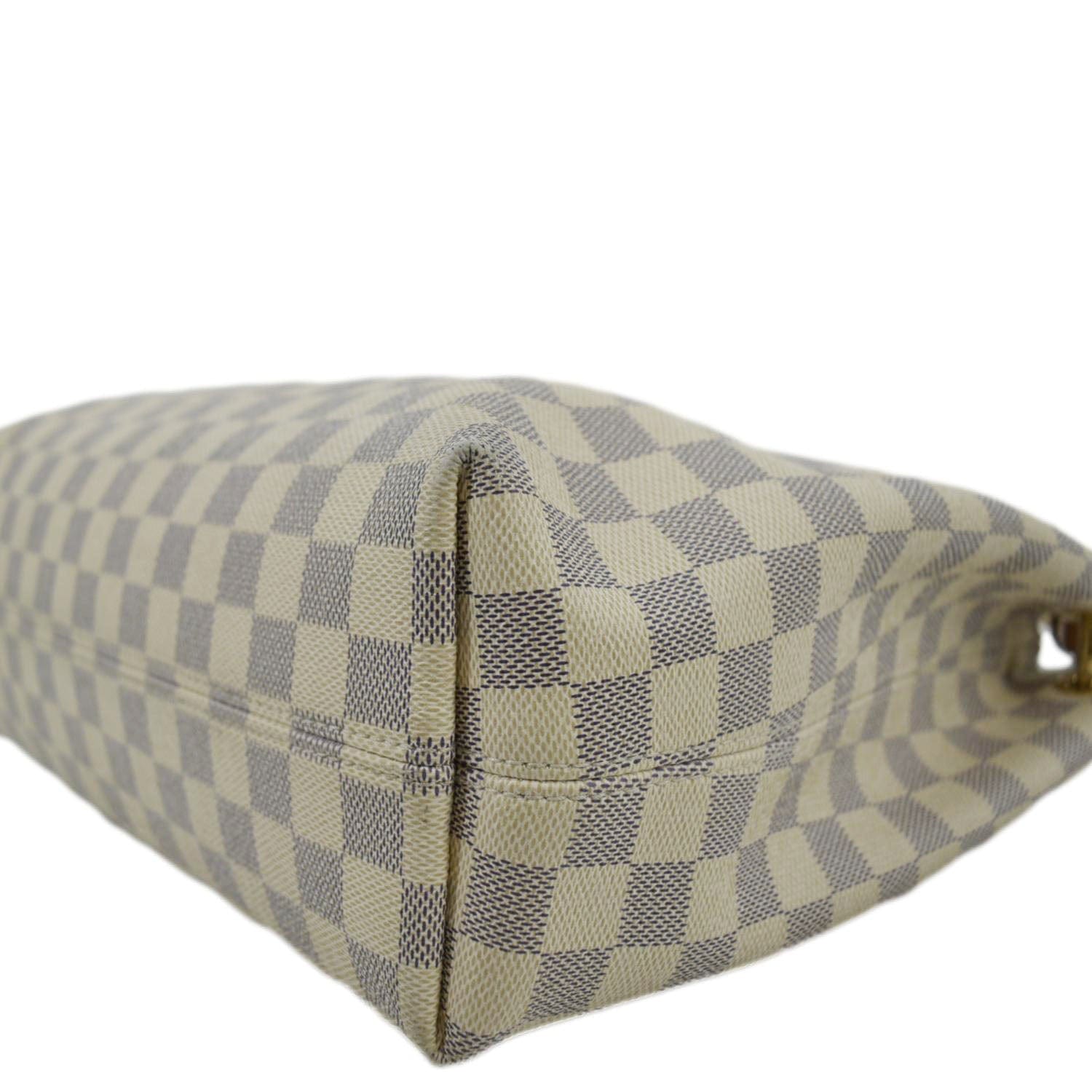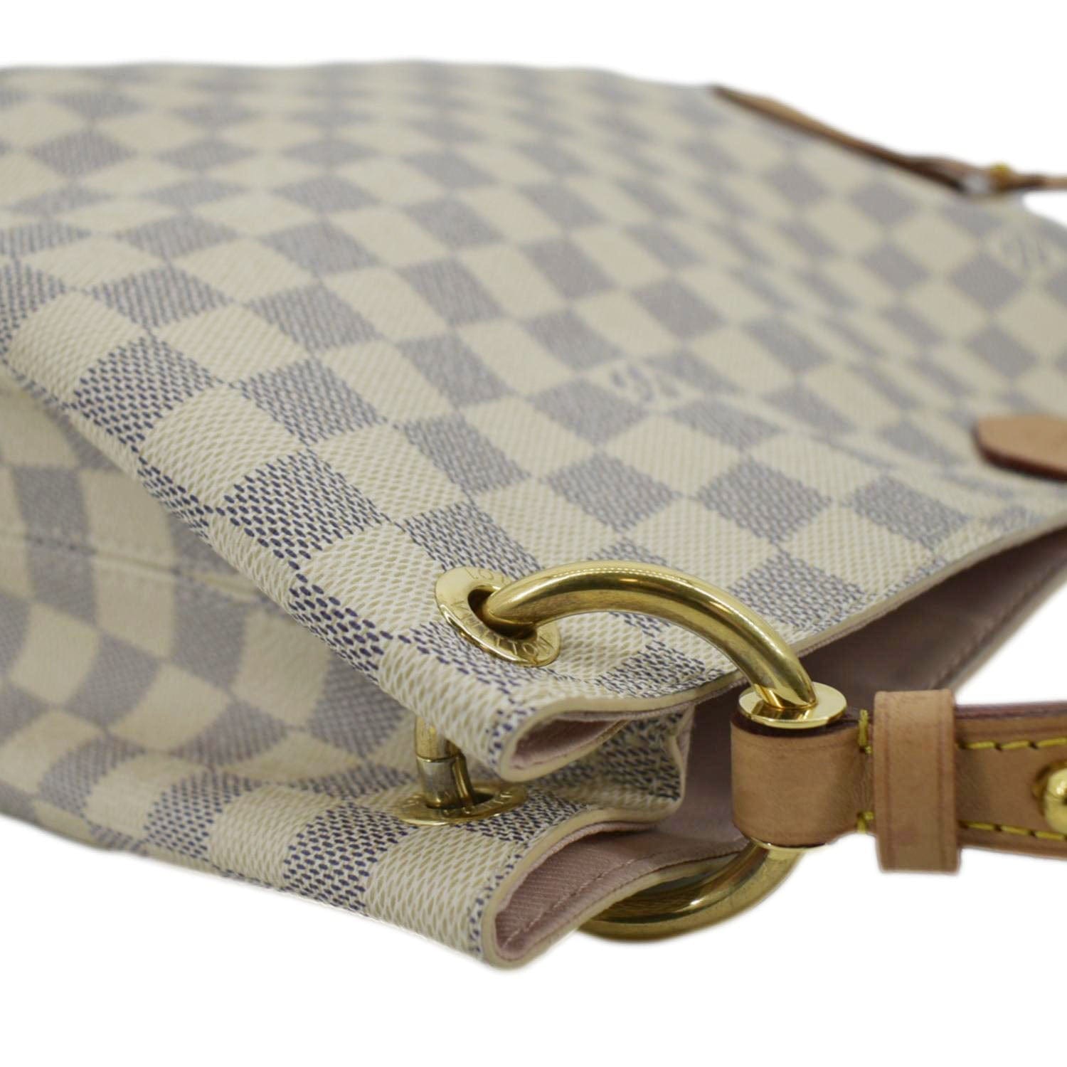 Elevate your style with the elegant LOUIS VUITTON Graceful in Damier Azur. This pre-loved luxury handbag exudes sophistication, featuring the iconic Damier Azur pattern and a practical, spacious design. Add a touch of luxury to your collection with this versatile and chic accessory.