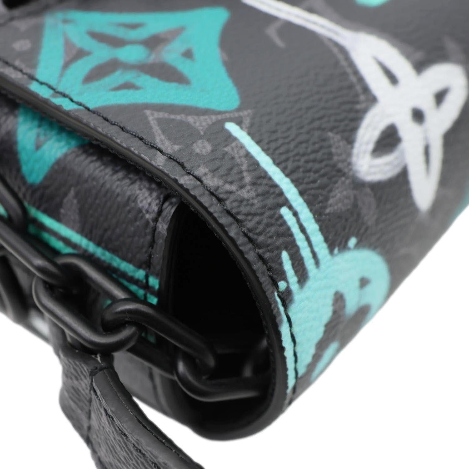 Graffiti LV Steamer Monogram Eclipse Canvas Crossbody Wallet Grey