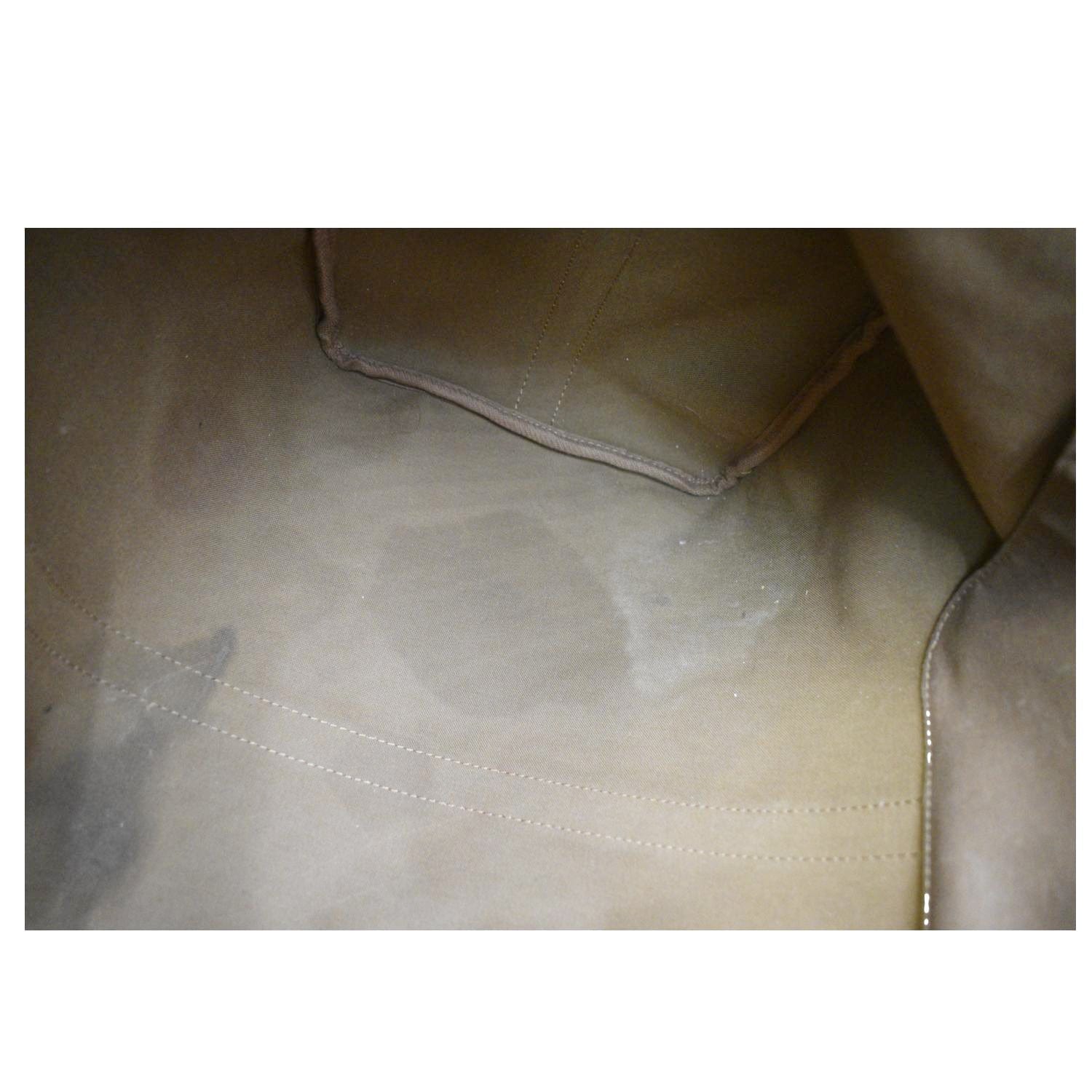 Good - The Item shows signs of use, including scratches on the exterior of the bag, and The interior of the bag has stains and white marks. Its gold color hardware has light scratches and signs of use on it. This bag is without any unpleasant smell.