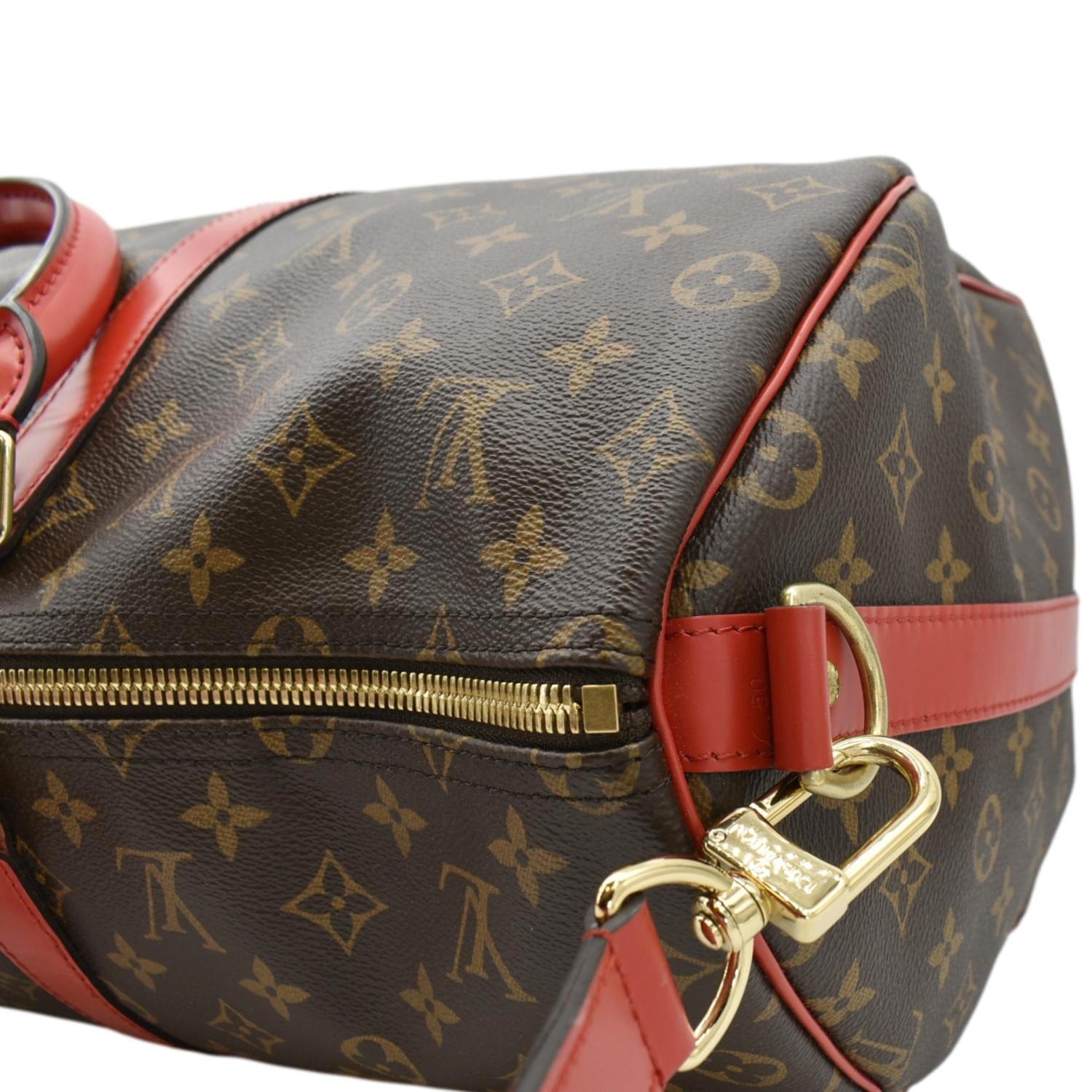 LOUIS VUITTON Keepall 50 Bandouliere Monogram Canvas Travel Bag Red