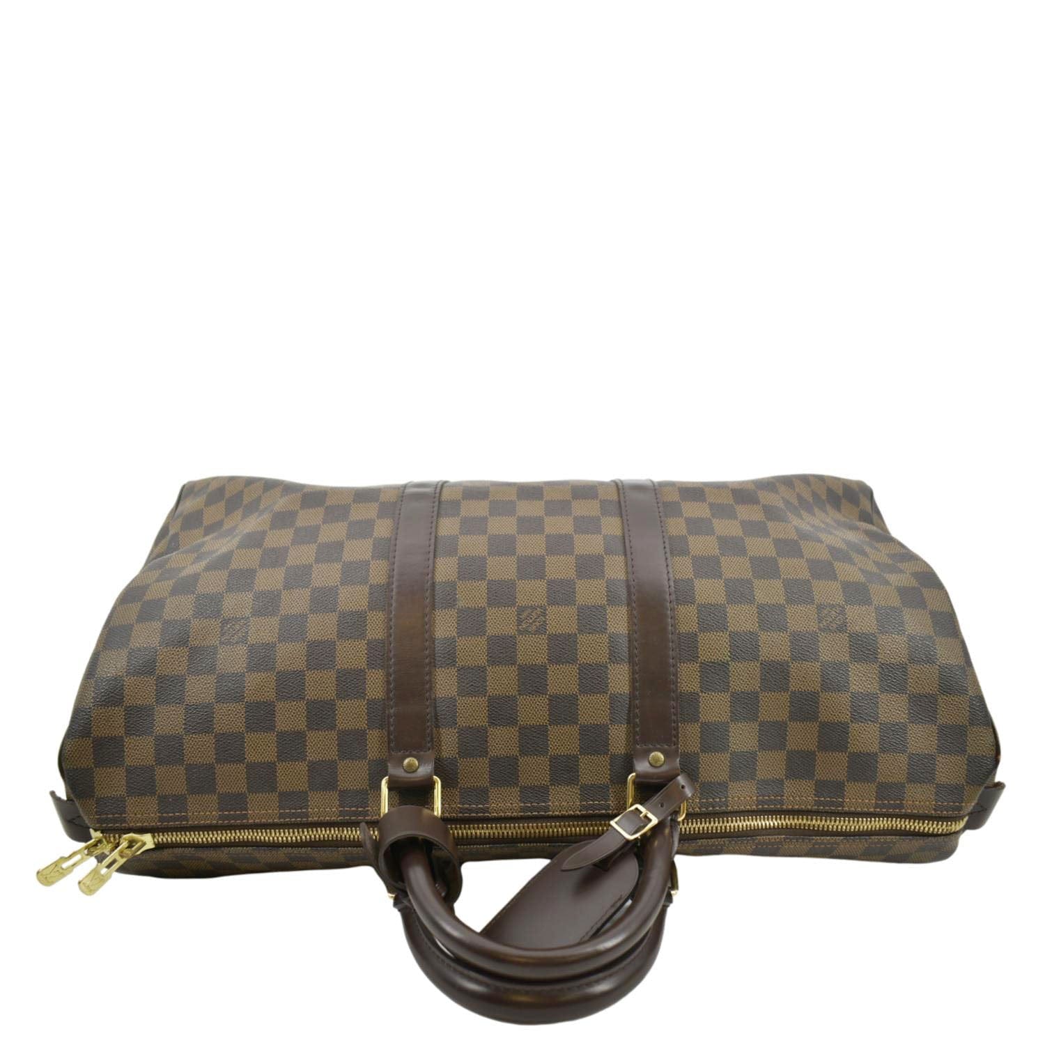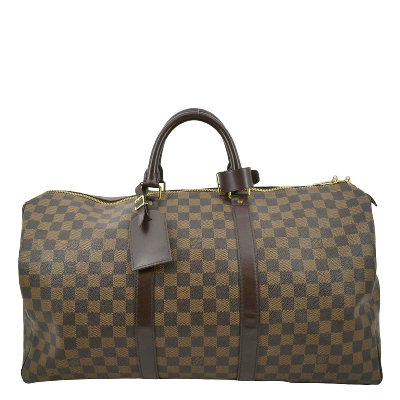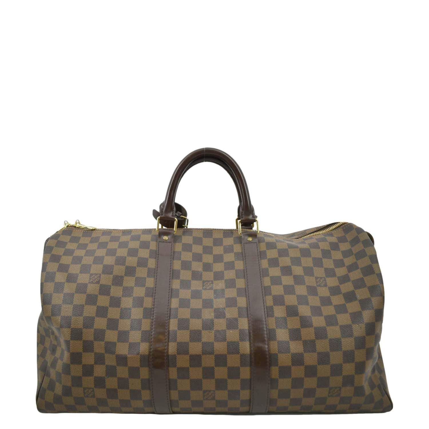 Experience luxury travel with the LOUIS VUITTON Keepall 50 in Damier Ebene—a pre-loved gem that fuses timeless elegance with practicality. Crafted with precision and adorned with the iconic Damier pattern, this spacious and sophisticated travel companion is a must-have for any discerning collector. Elevate your journeys with this iconic piece from Louis Vuitton.