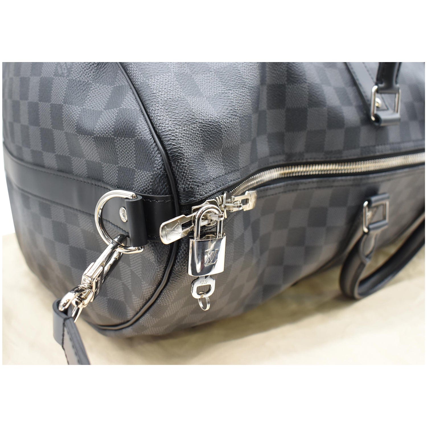 LOUIS VUITTON Keepall 55 Damier Graphite Bandouliere Travel Bag Black