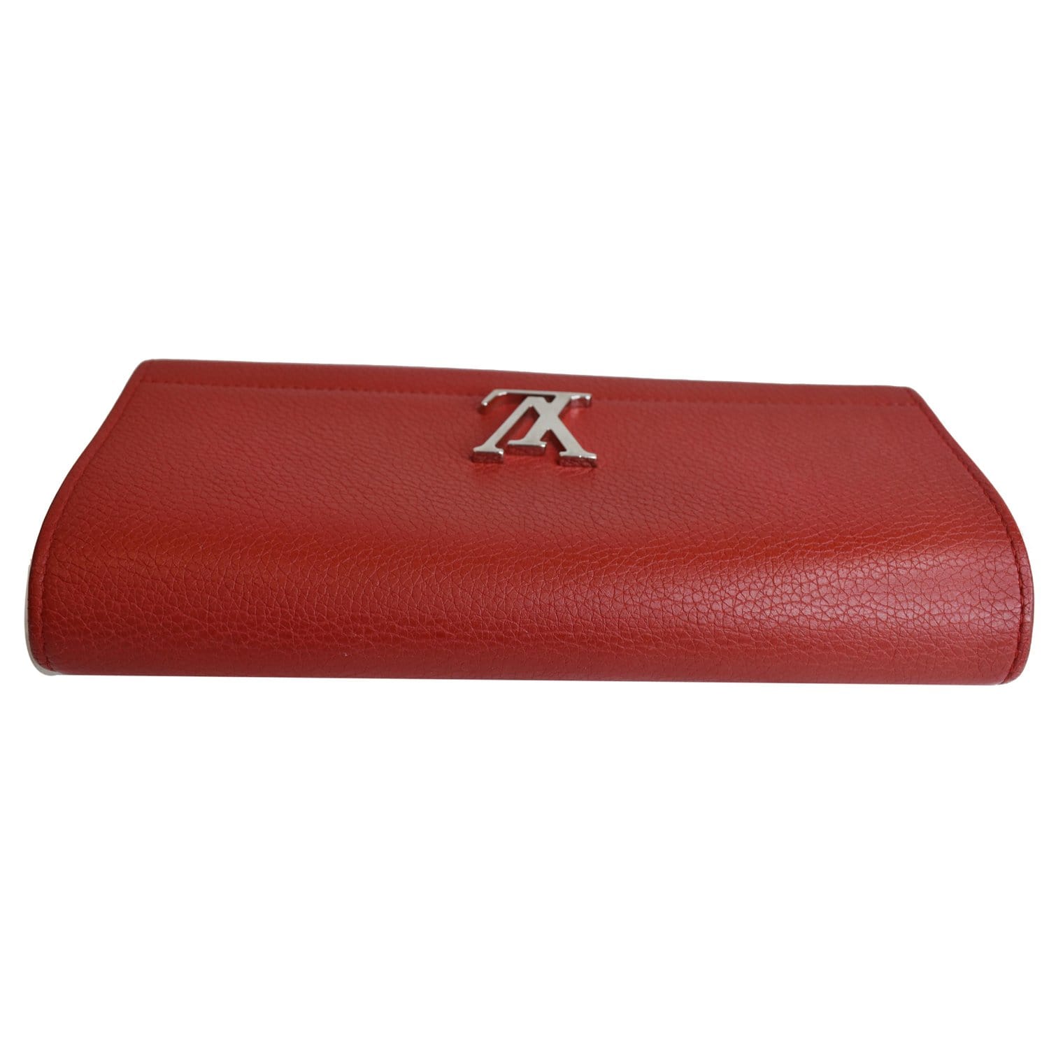 LOUIS VUITTON Lockme II Calfskin Leather Wallet Red