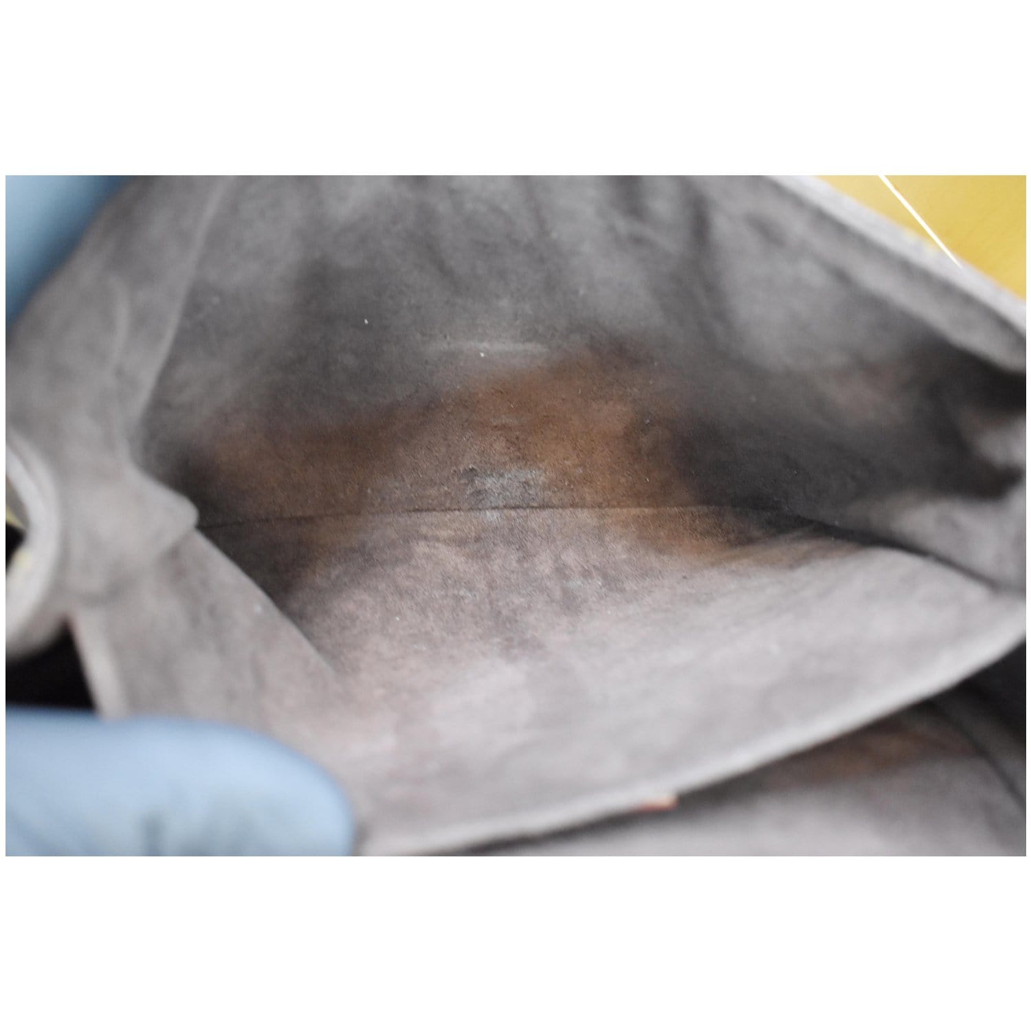Visible Scratches, rubbed corners, leather tanning darkening. inside stains |