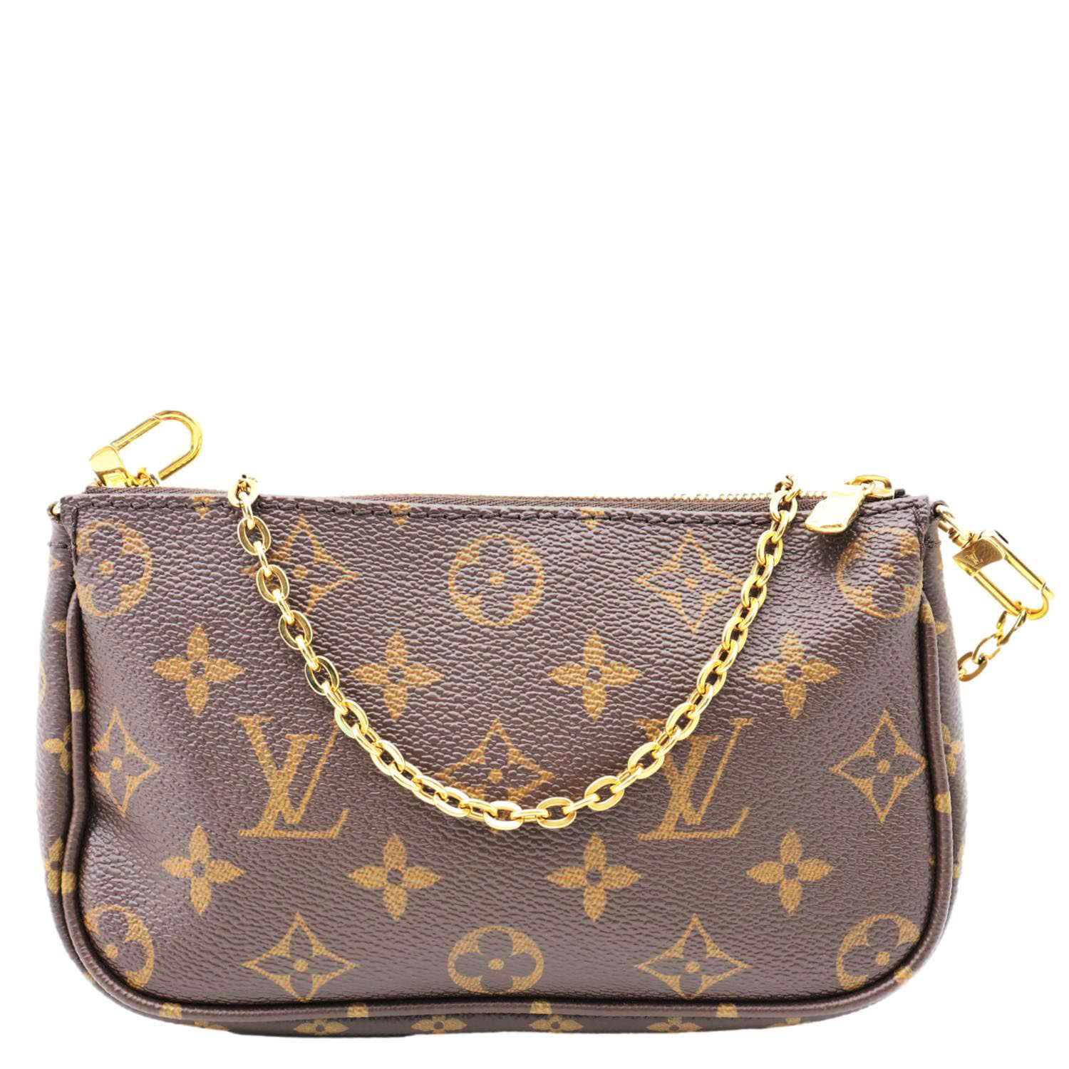 A classic LOUIS VUITTON Pochette Accessoires Mini in Monogram Canvas with a chic gold-tone chain. Compact, stylish, and perfect for carrying your essentials with an iconic LV charm.