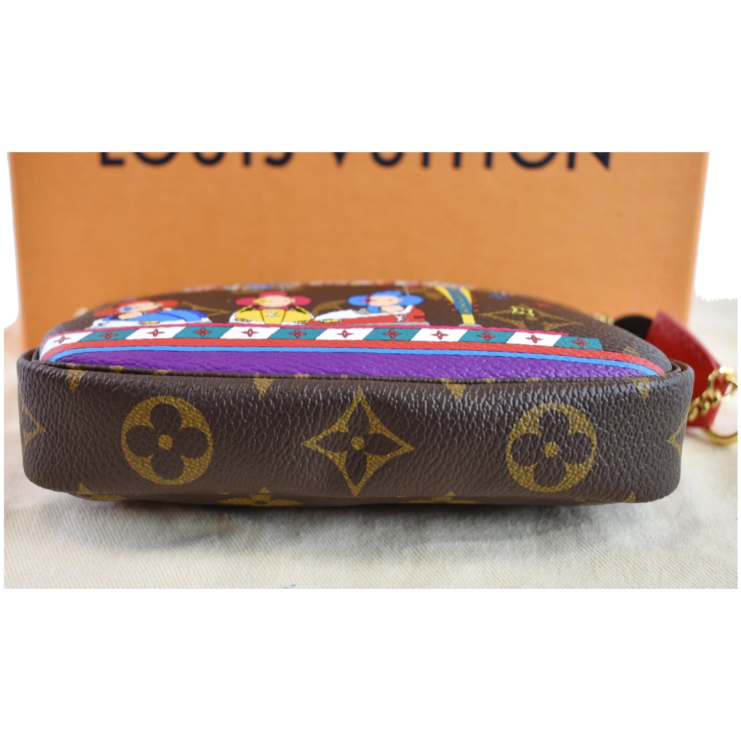 LOUIS VUITTON Mini Pochette Christmas Monogram Canvas Accessoires Pouch Brown