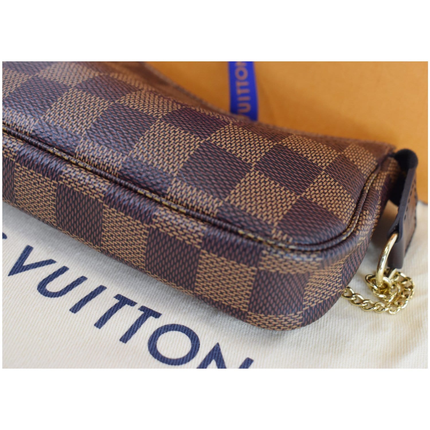 LOUIS VUITTON Mini Pochette Damier Ebene Accessories Pouch Brown
