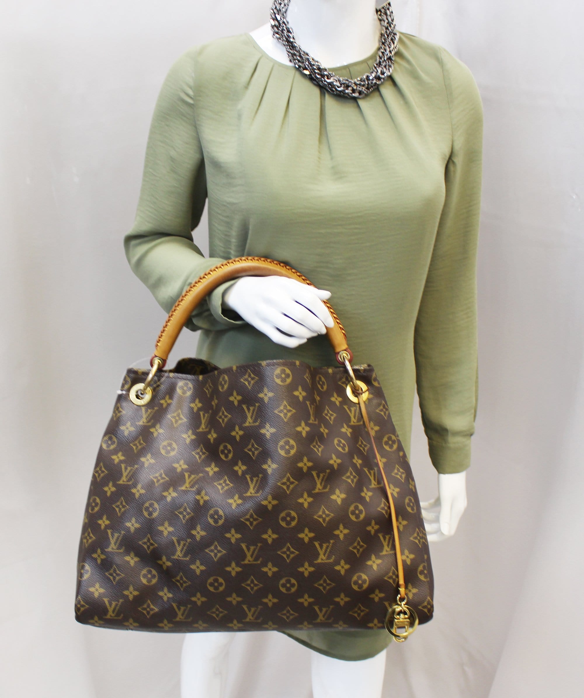 Louis Vuitton Monogram Canvas Artsy MM Bag has a unique and modern structure. This roomy tote makes a perfect work or weekend bag, large enough to hold all your essentials in style. It features a detachable stylish Louis Vuitton key ring for exterior or interior use, and enough interior pockets to keep you organized on the go.