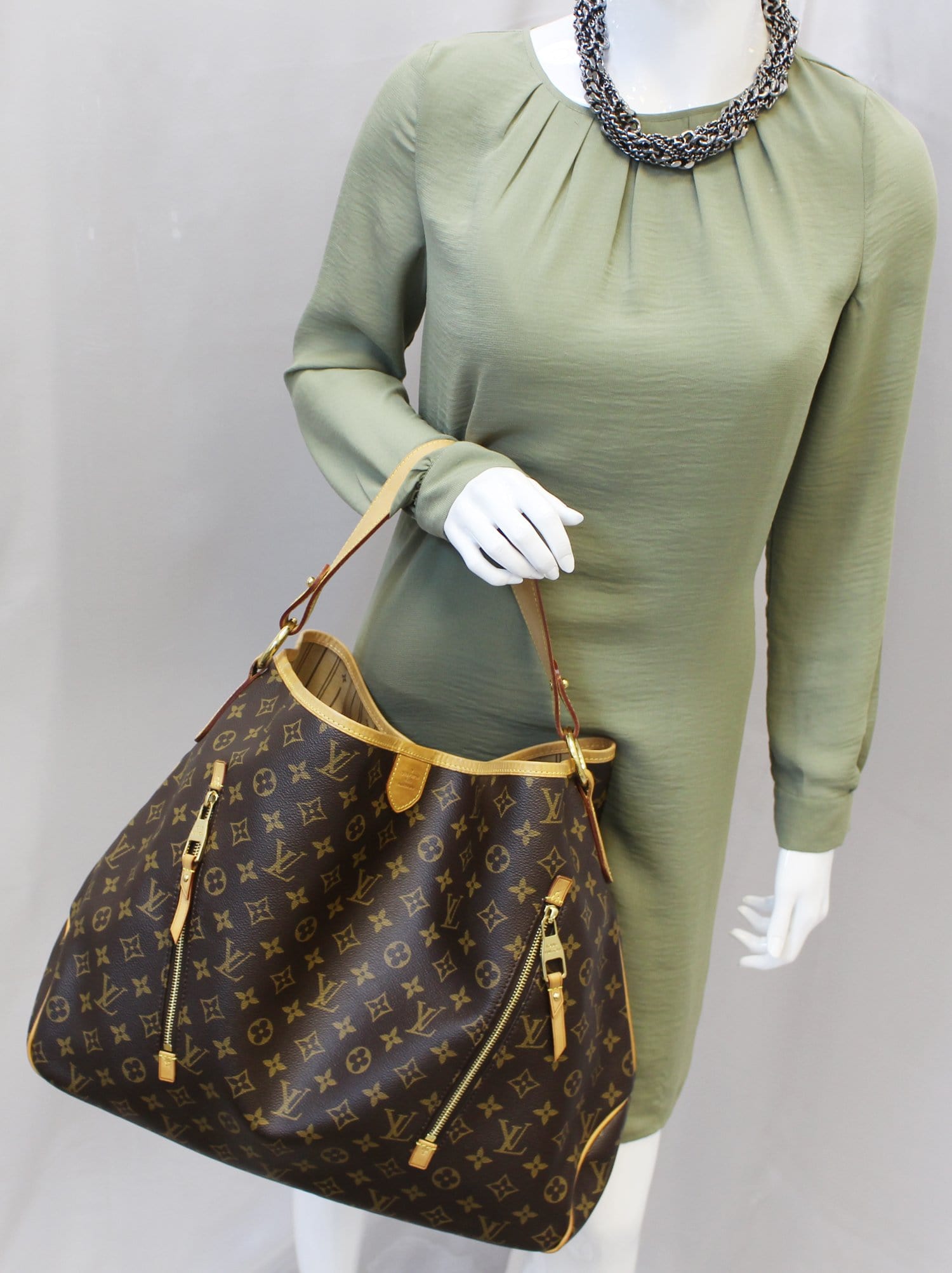 Louis Vuitton Monogram Canvas Delightful GM Bag is hot off the press from Louis Vuitton and looks down-right glamorous in Monogram Canvas. It features a large yet lightweight design and feel with an extra spacious interior and two diagonal zipper pockets. The striped lining was inspired by vintage Louis Vuitton trunks.