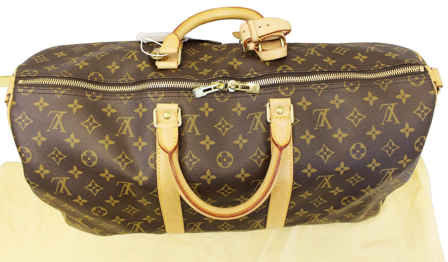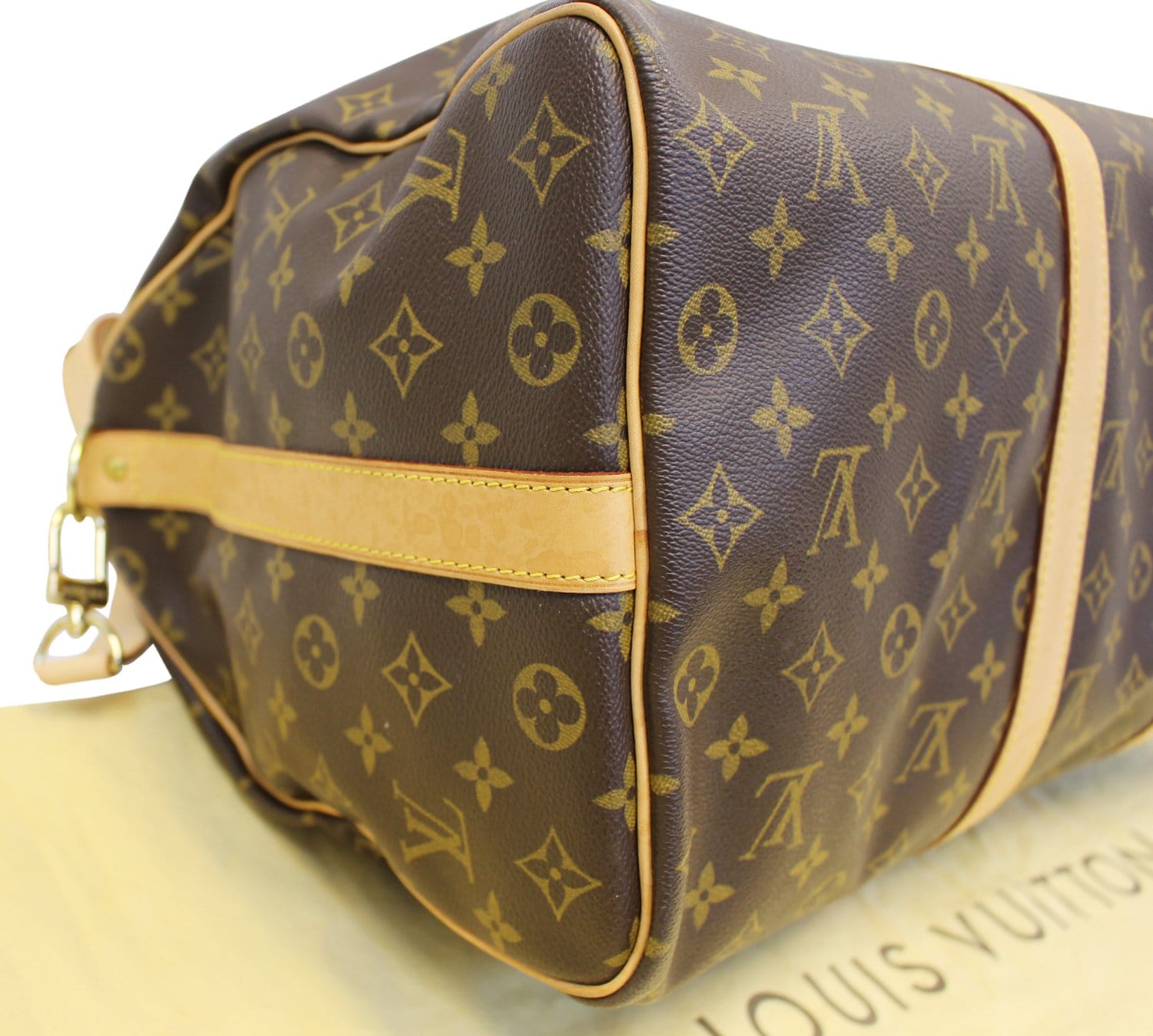 LOUIS VUITTON Travel Bag Monogram Keepall 50 Bandouliere Used is for travel or weekend getaway. With its ultra-spacious interior and the capability of folding flat, this bag is versatile as an additional travel piece. The Bandouliere version comes with an adjustable shoulder strap to make carrying this piece even easier.