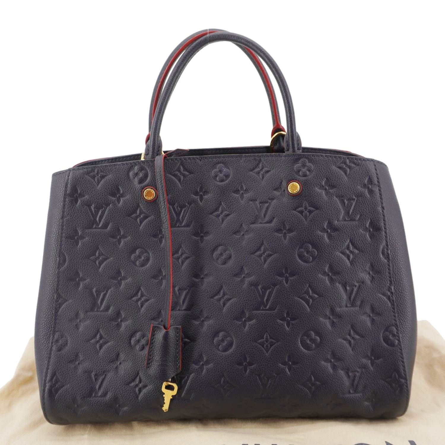 The Louis Vuitton Montaigne GM in navy blue Empreinte leather is a sophisticated and spacious shoulder bag. Featuring embossed monogram detailing, gold-tone hardware, and a versatile interior with multiple compartments, it’s perfect for work or everyday elegance.