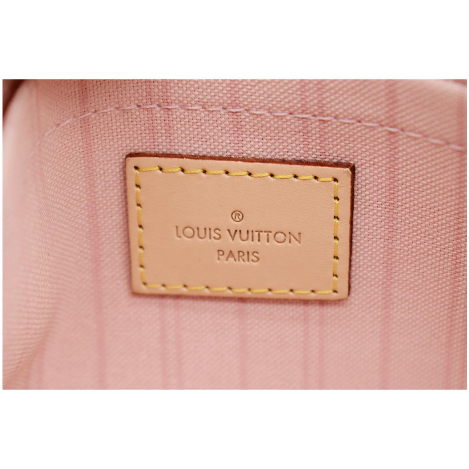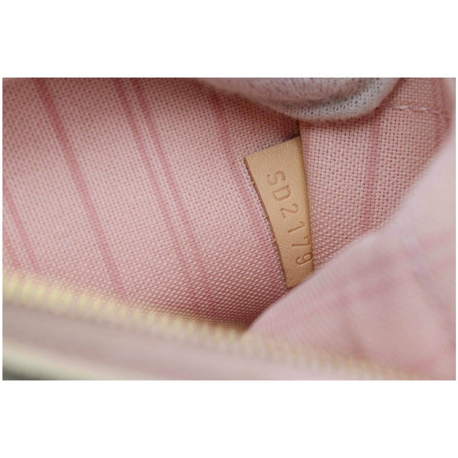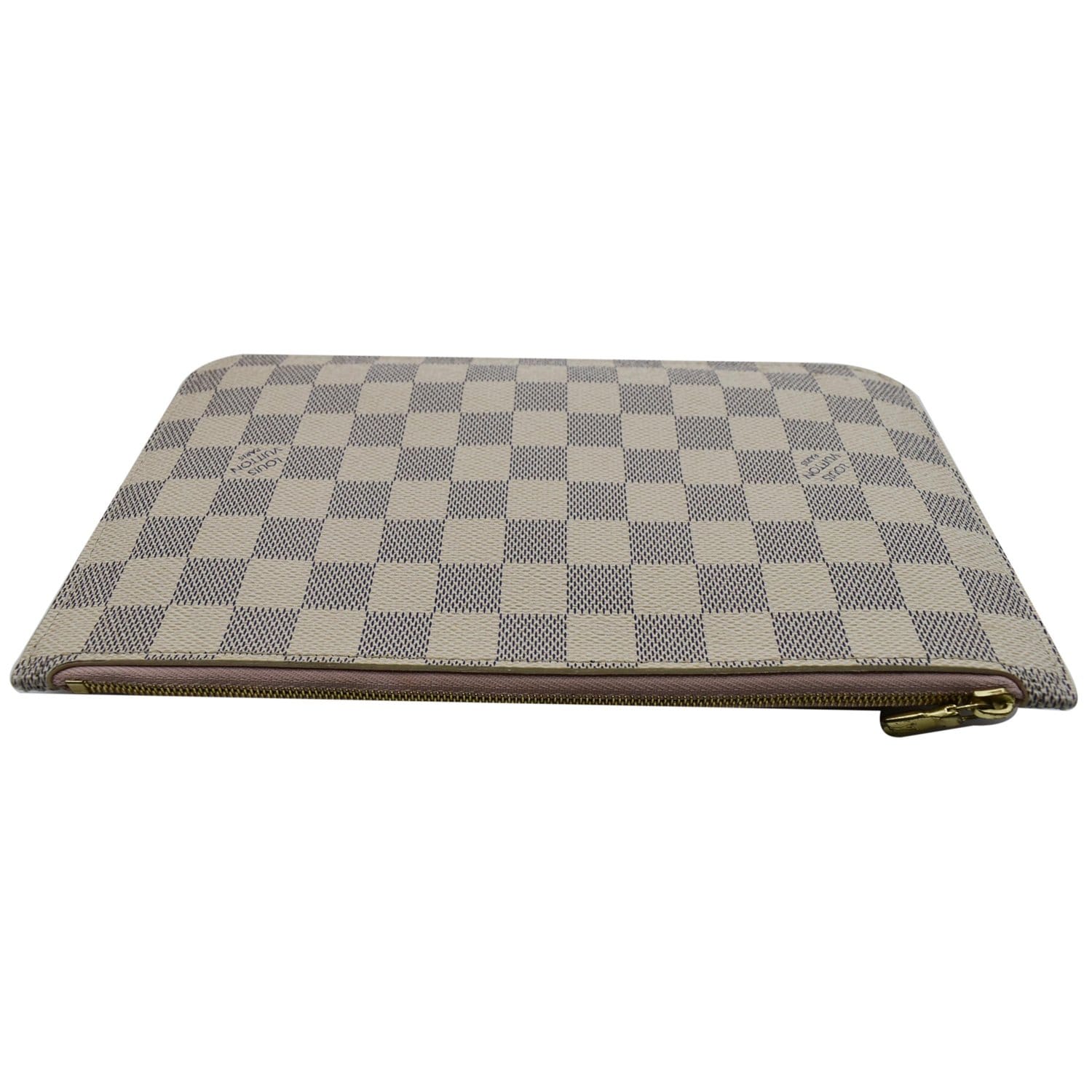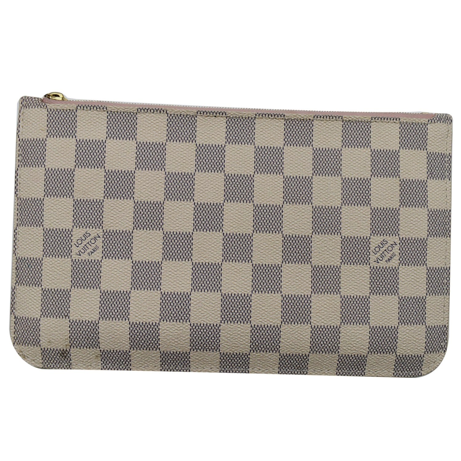 LOUIS VUITTON Neverfull MM Damier Azur Pochette Wristlet Pouch Rose Ballerine